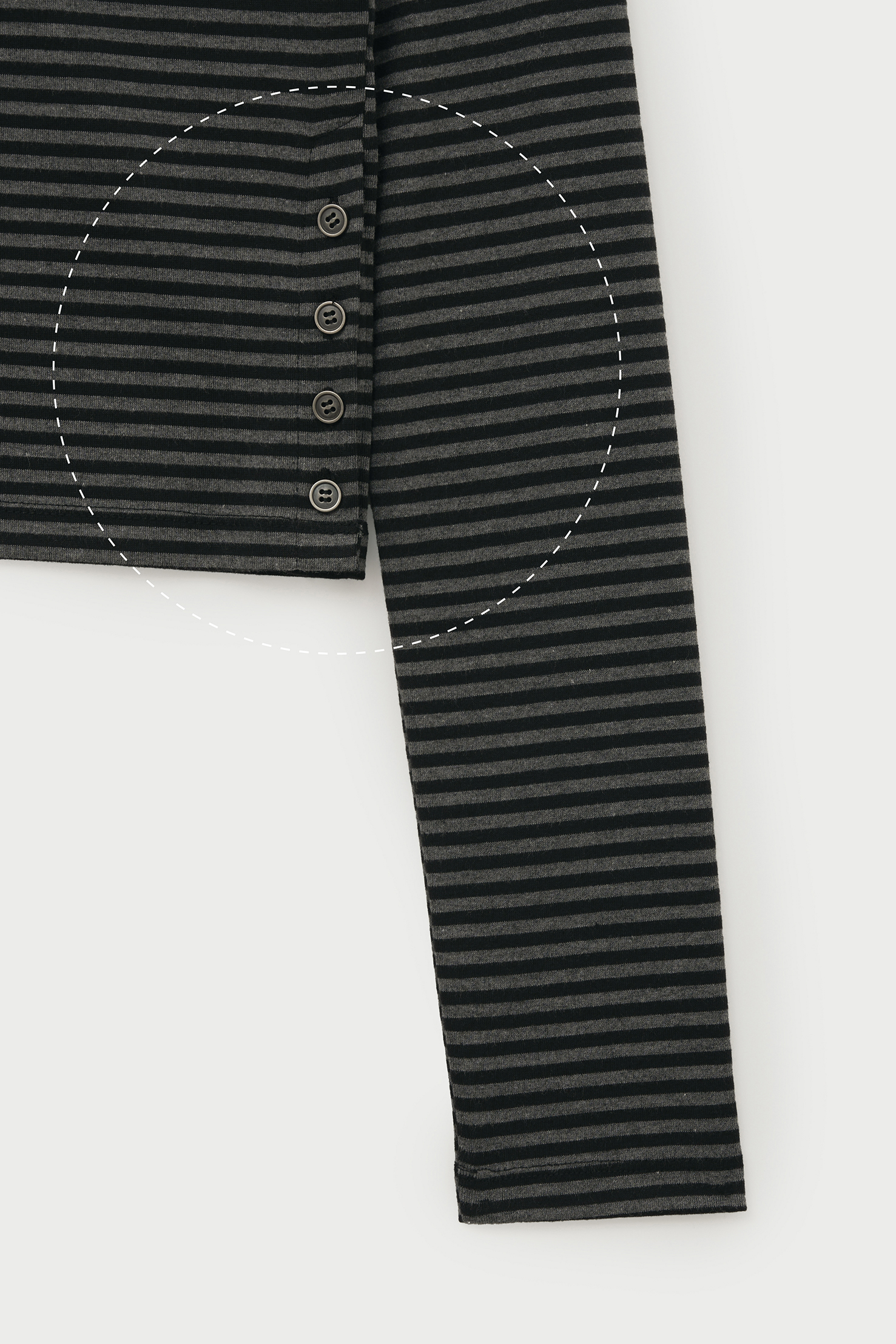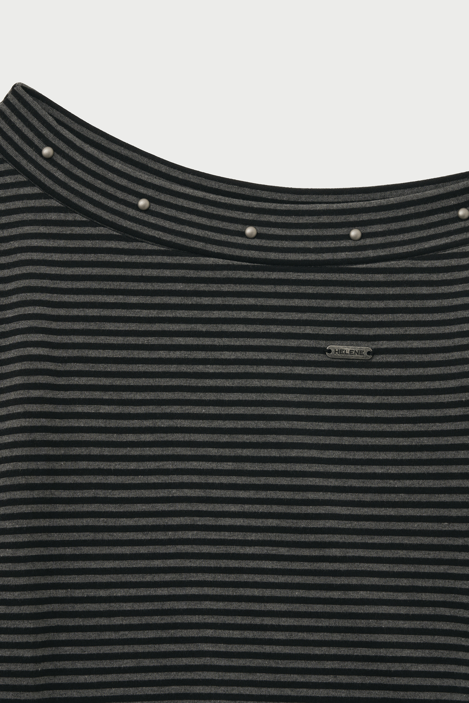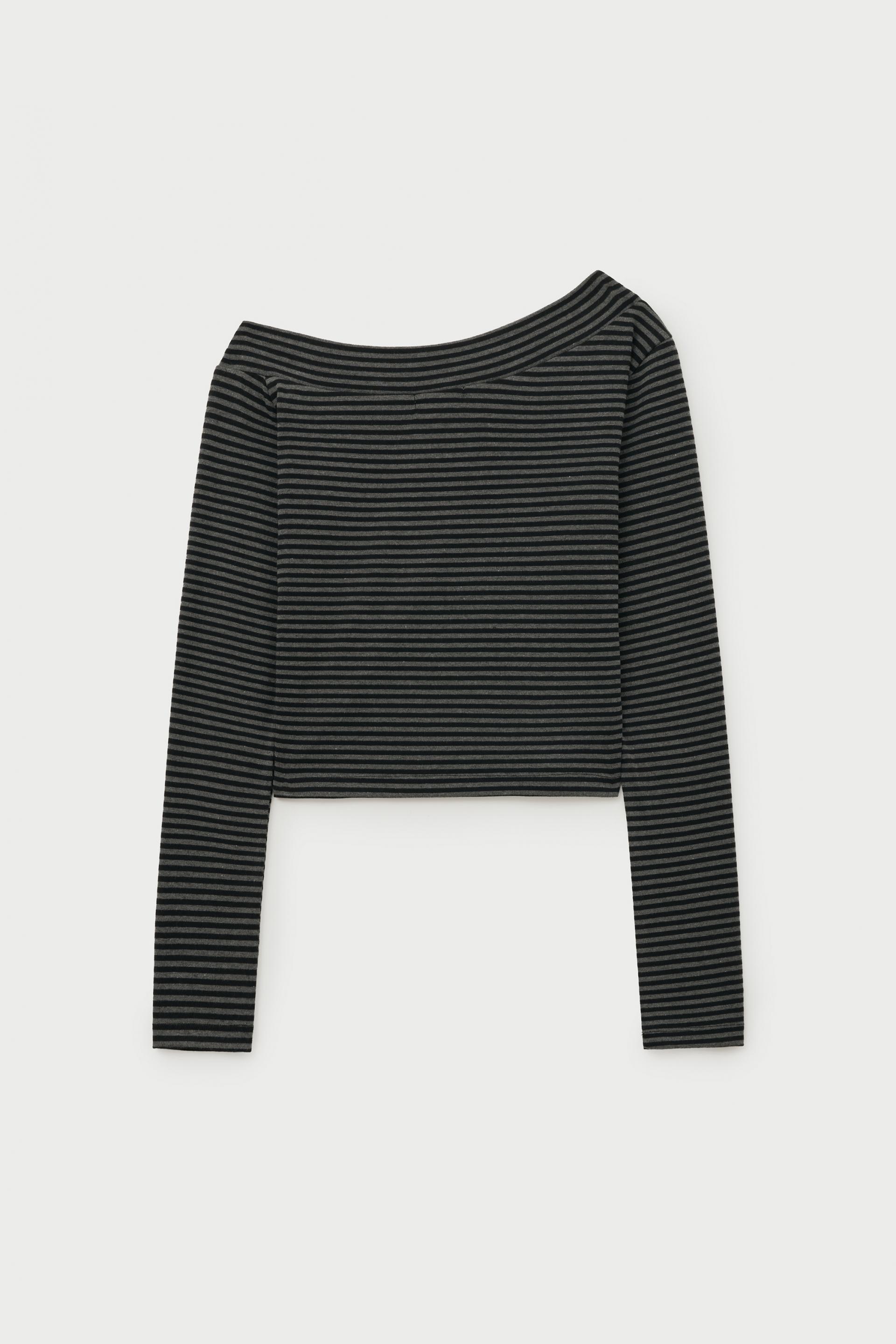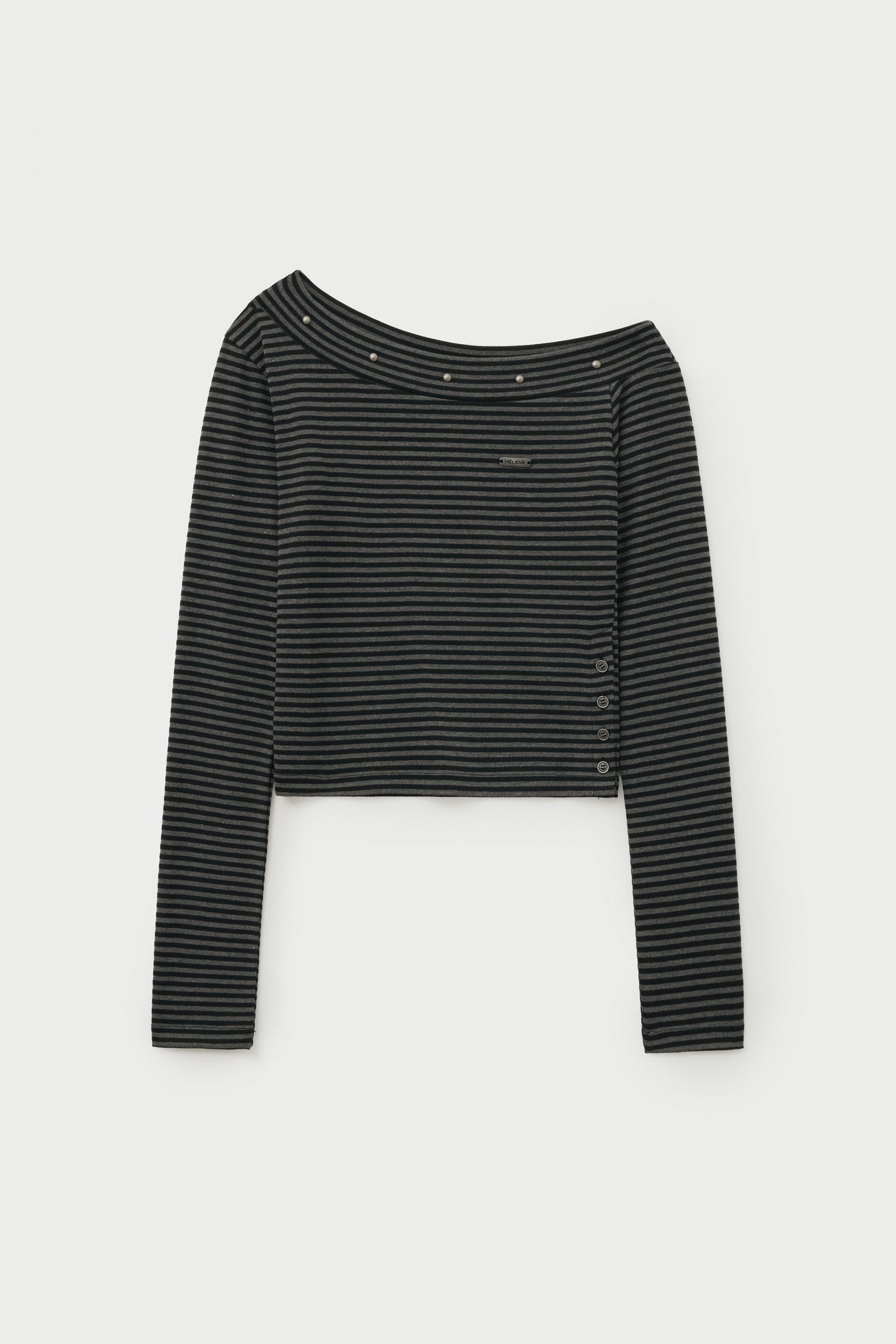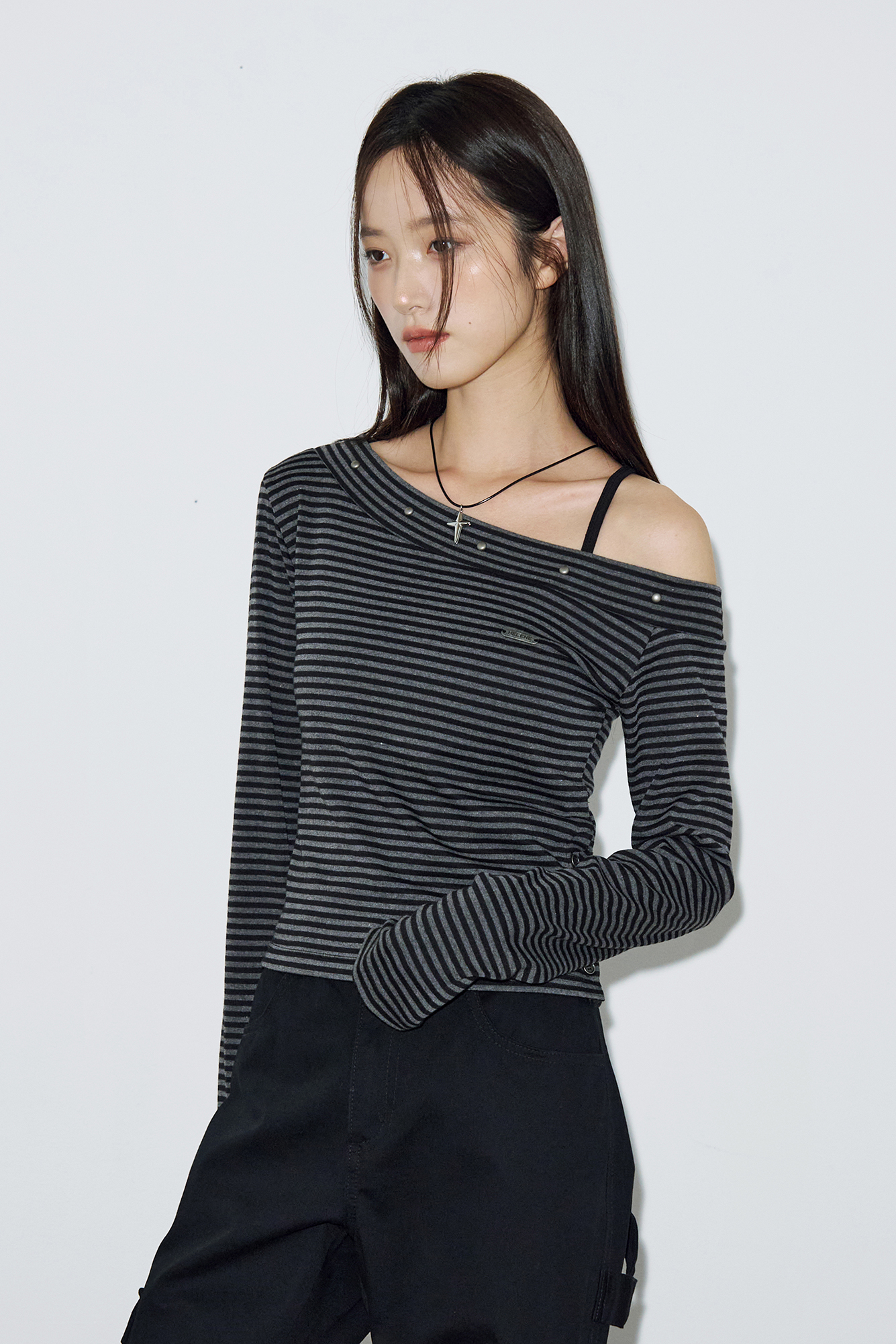 스터드 언벨런스 오프숄더 롱 슬리브 [스트라이프]