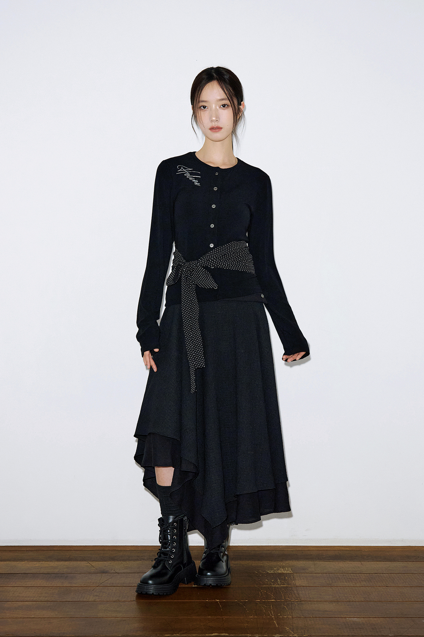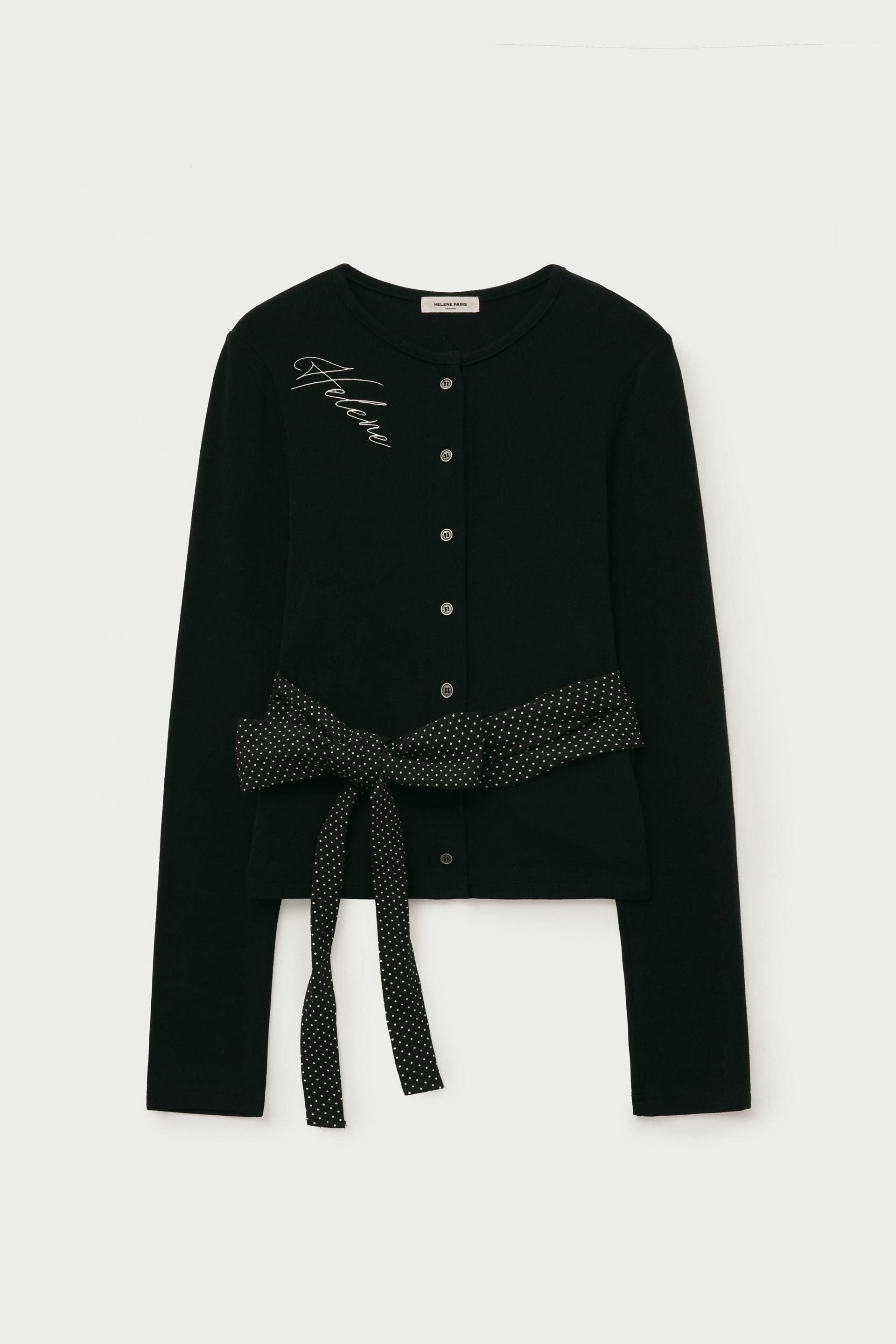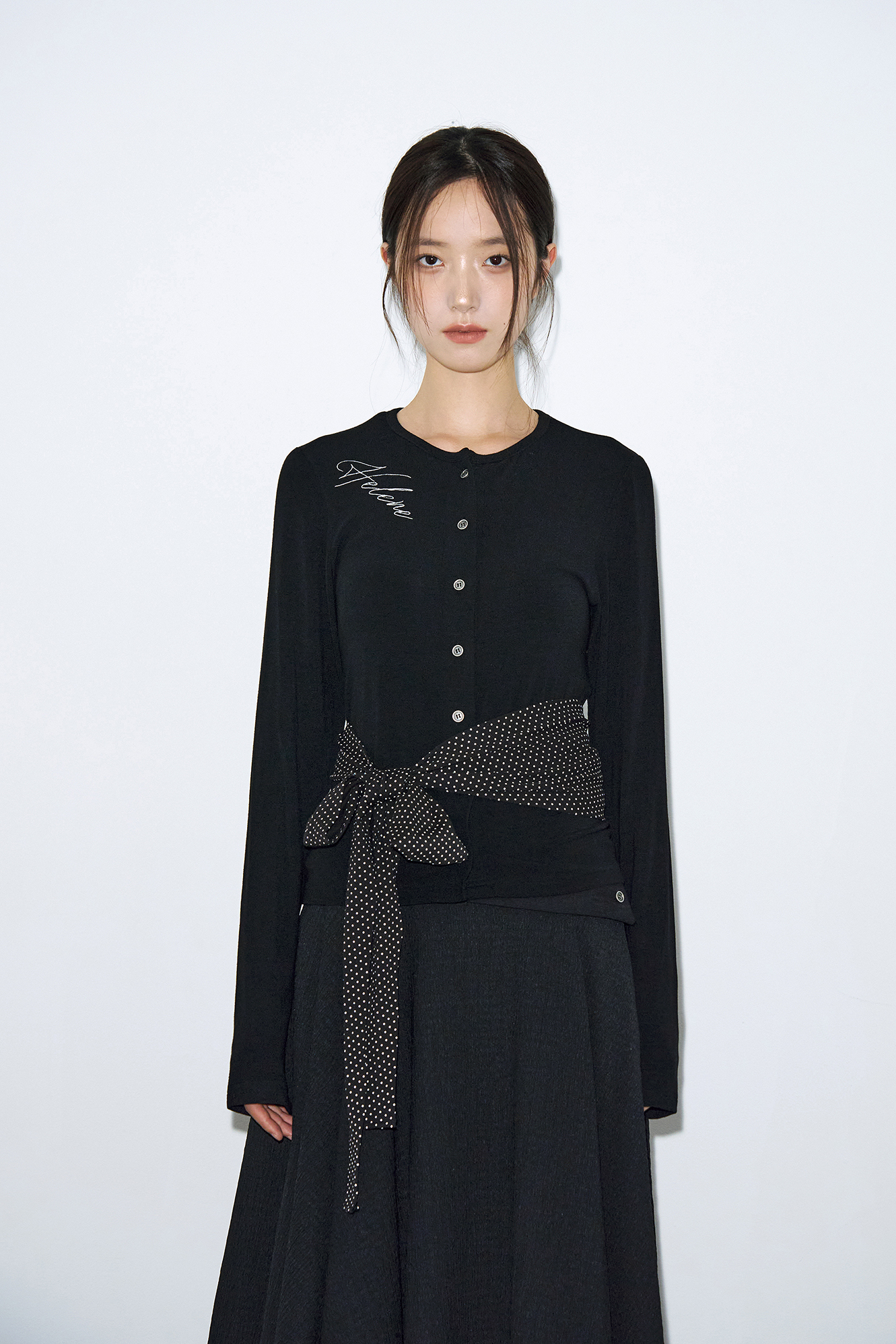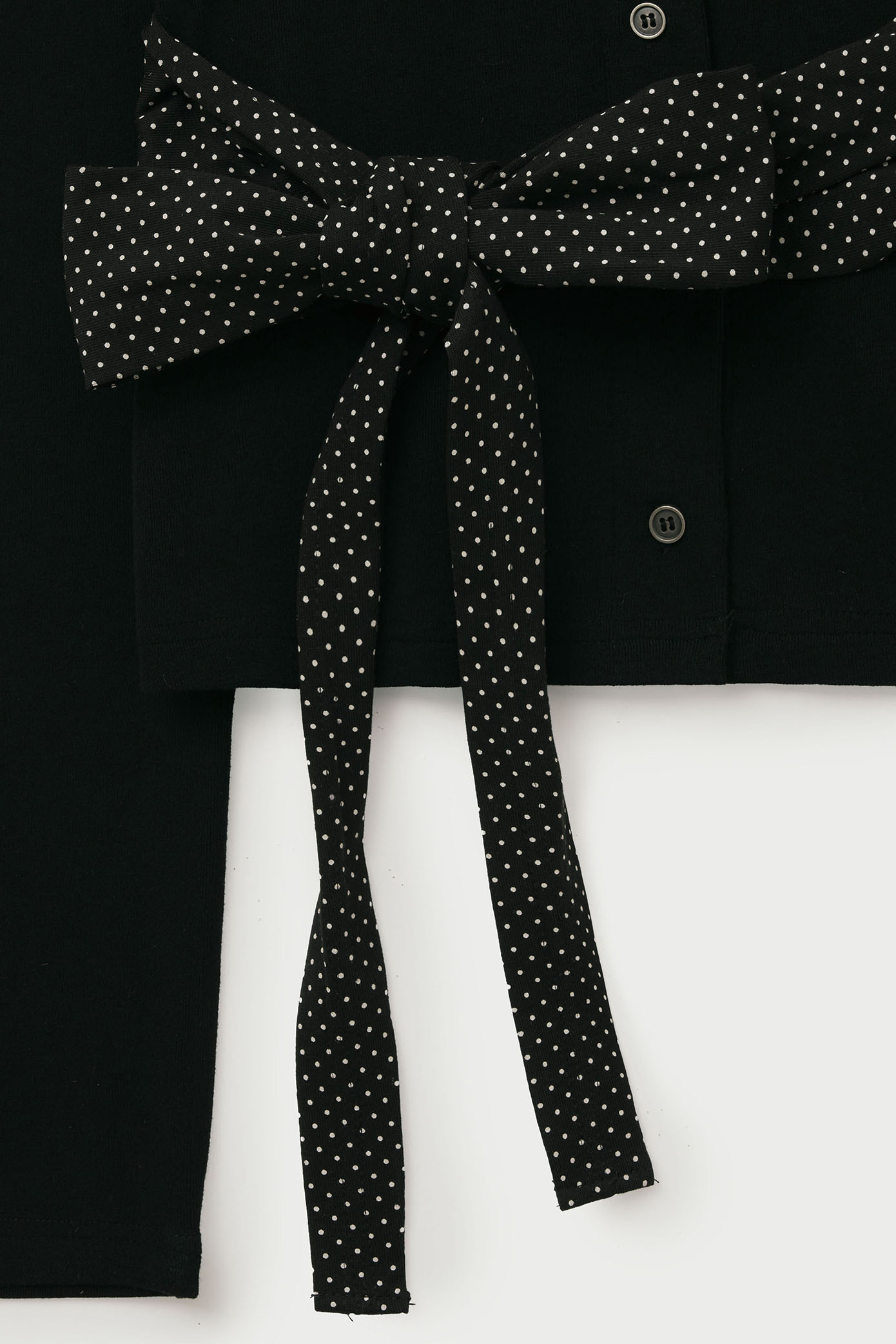 - 로고 자수와 배색 도트 리본 타이가 포인트가 되는 가디건입니다.
