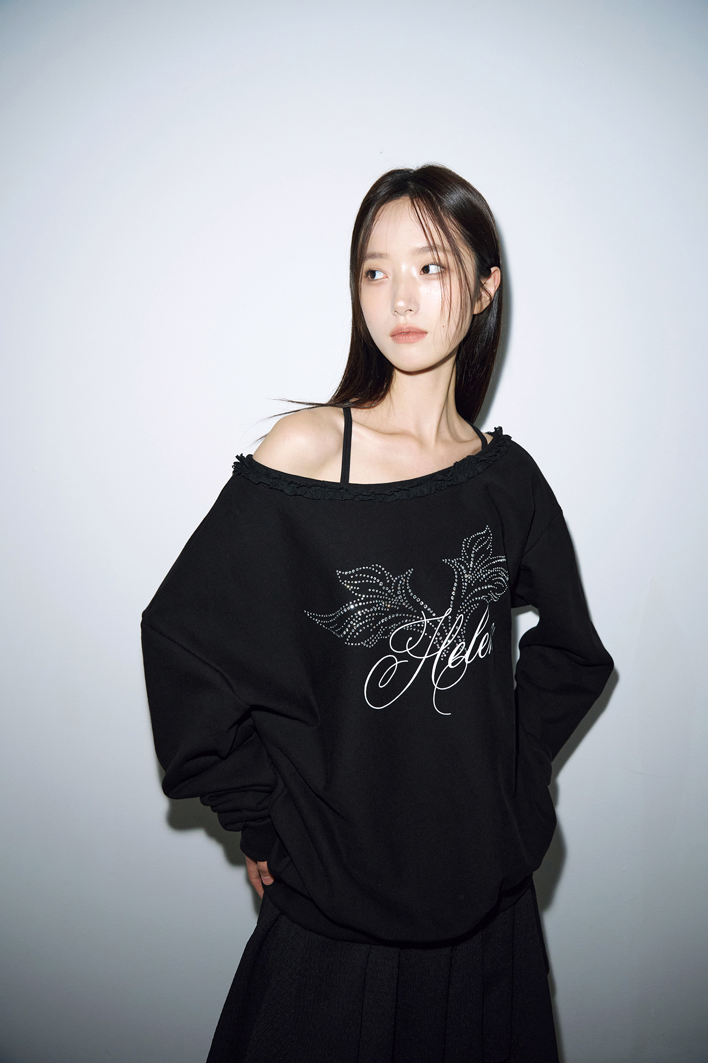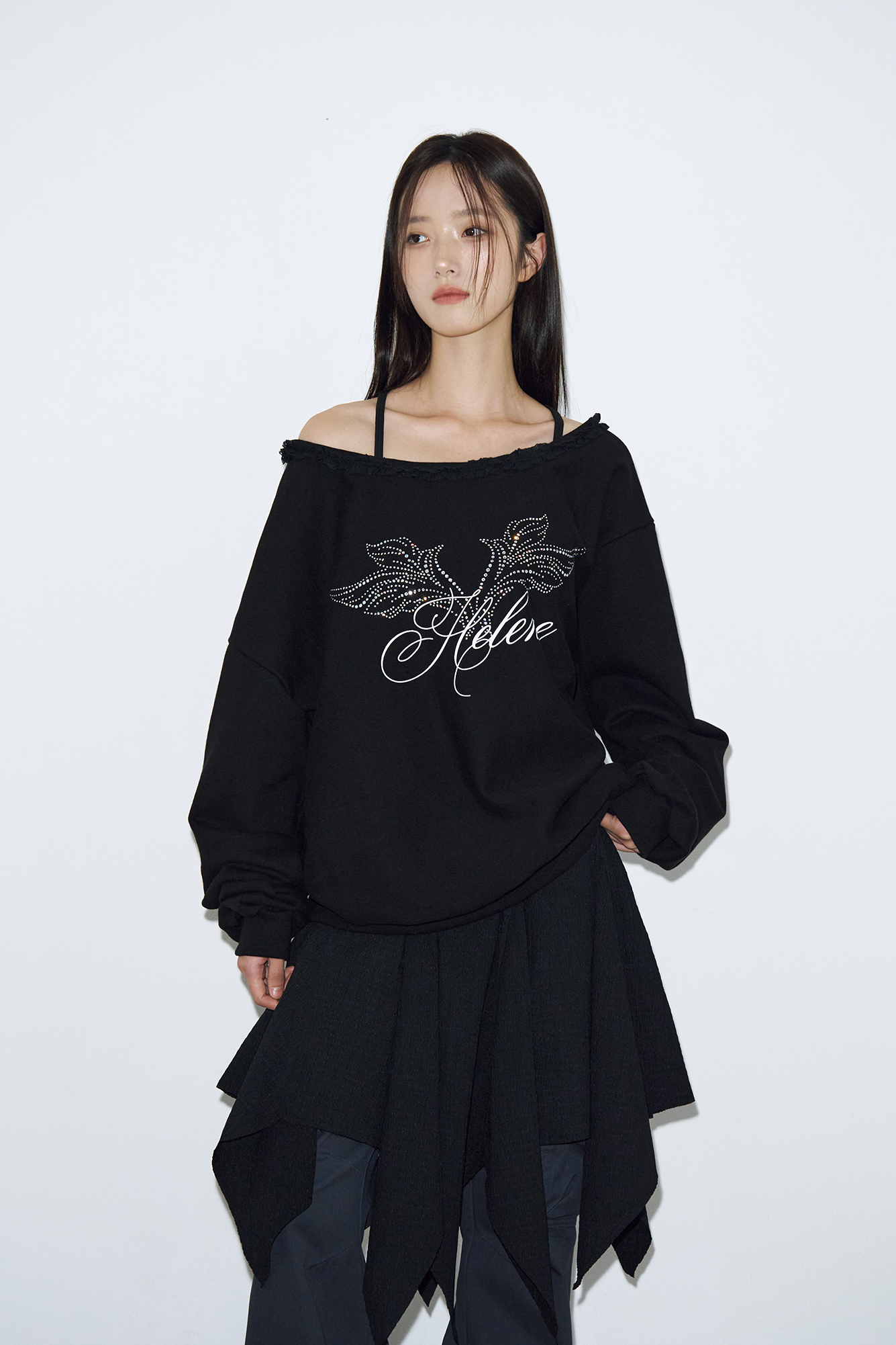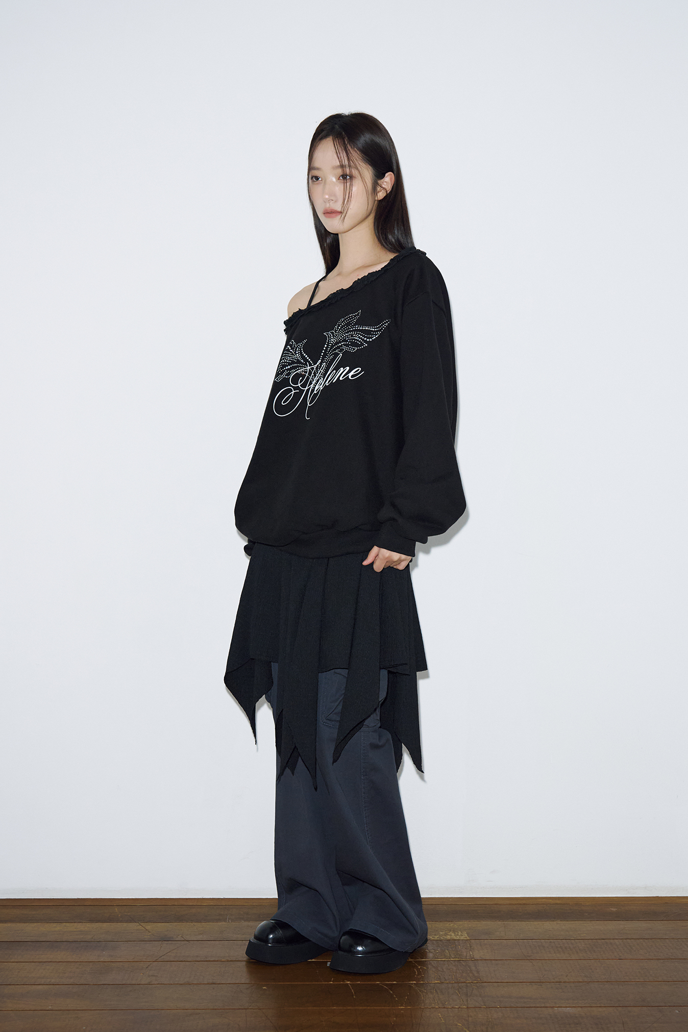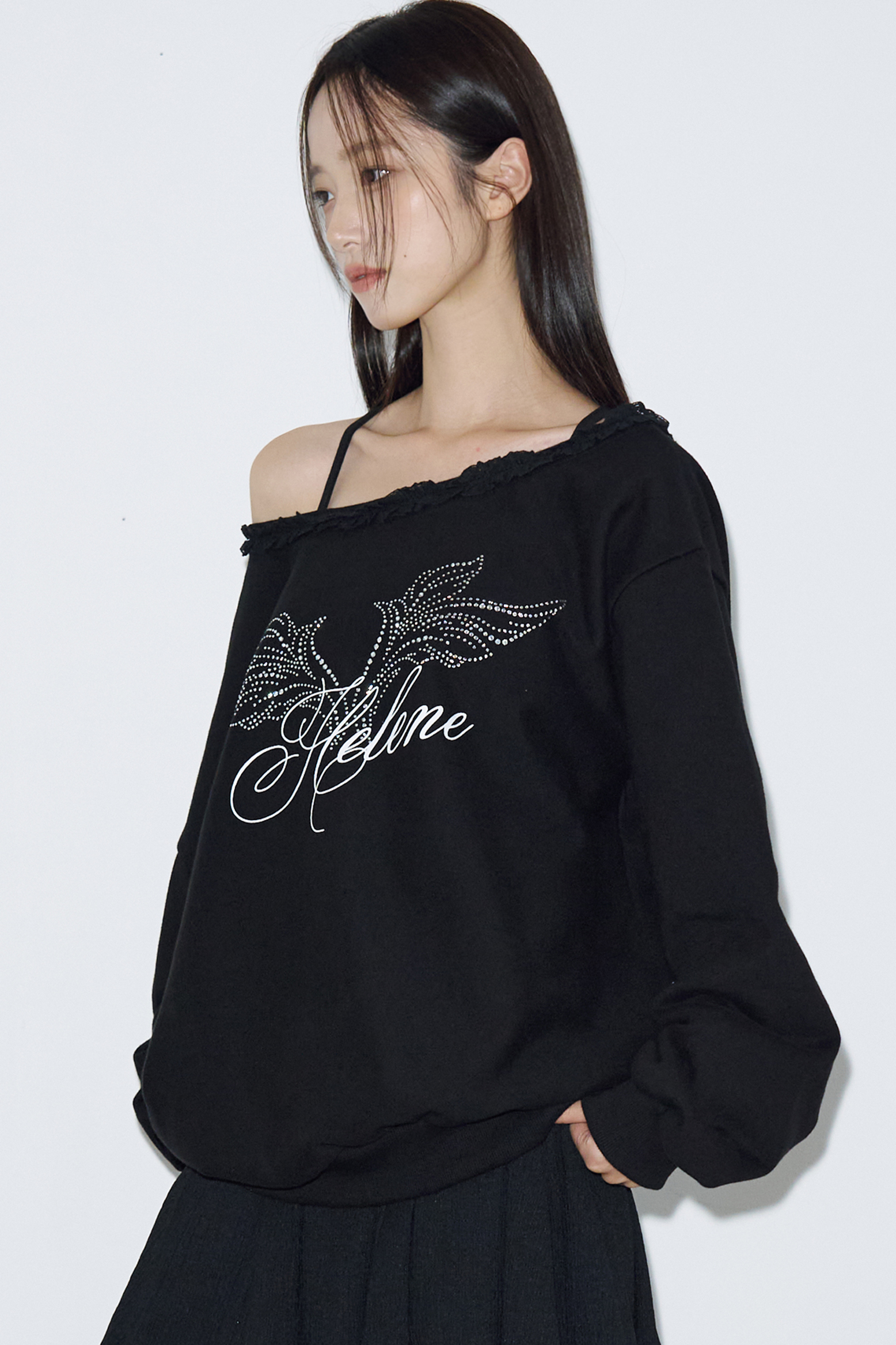 엔젤 레터링 원 숄더 스웨트셔츠 [블랙]