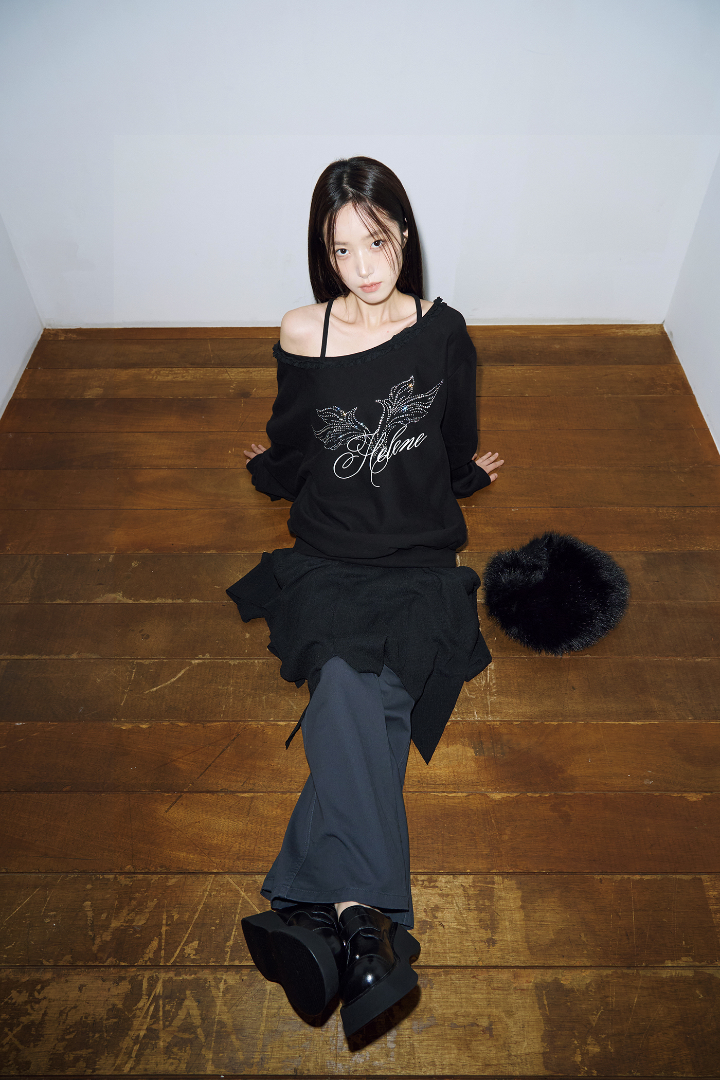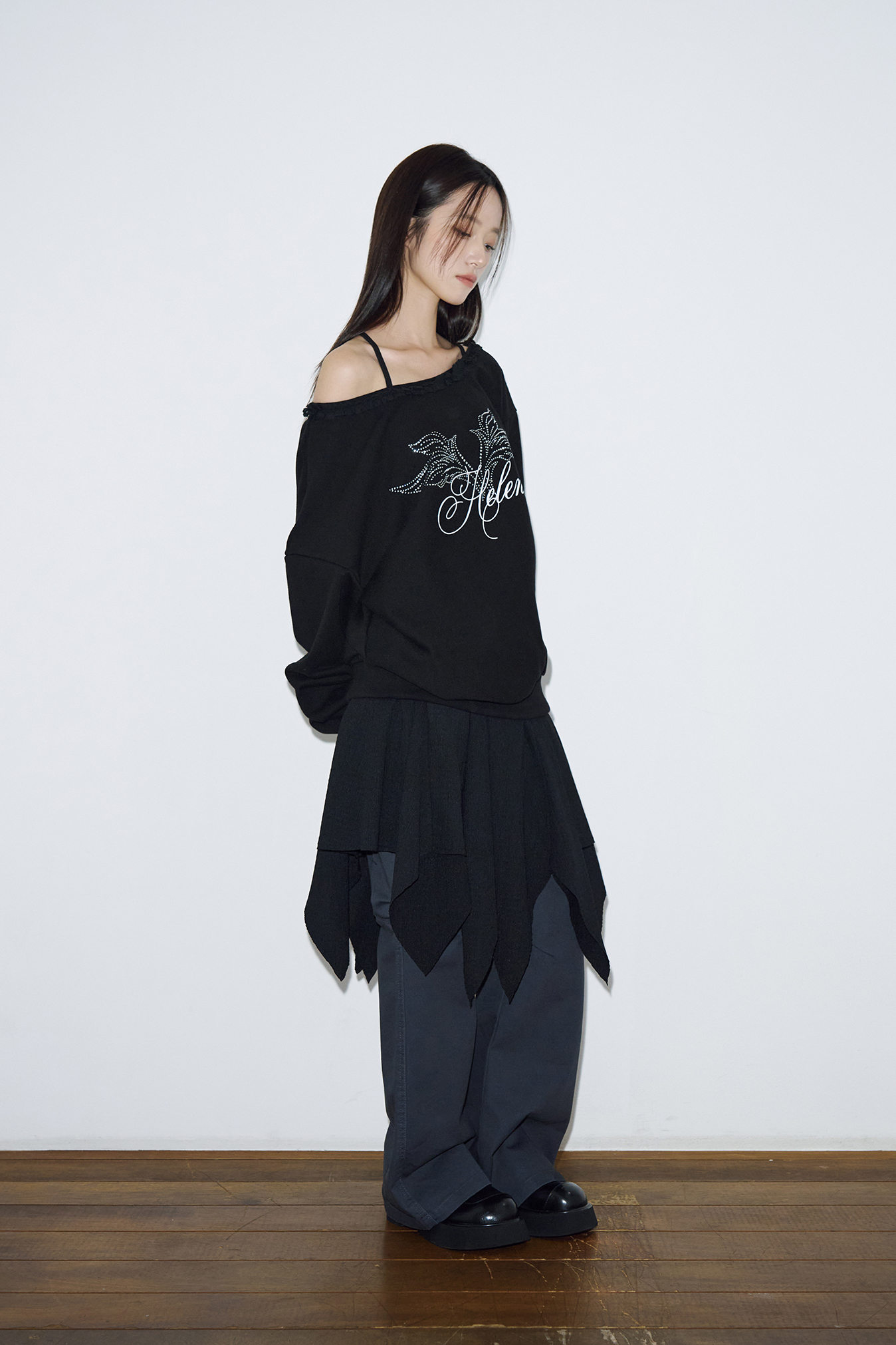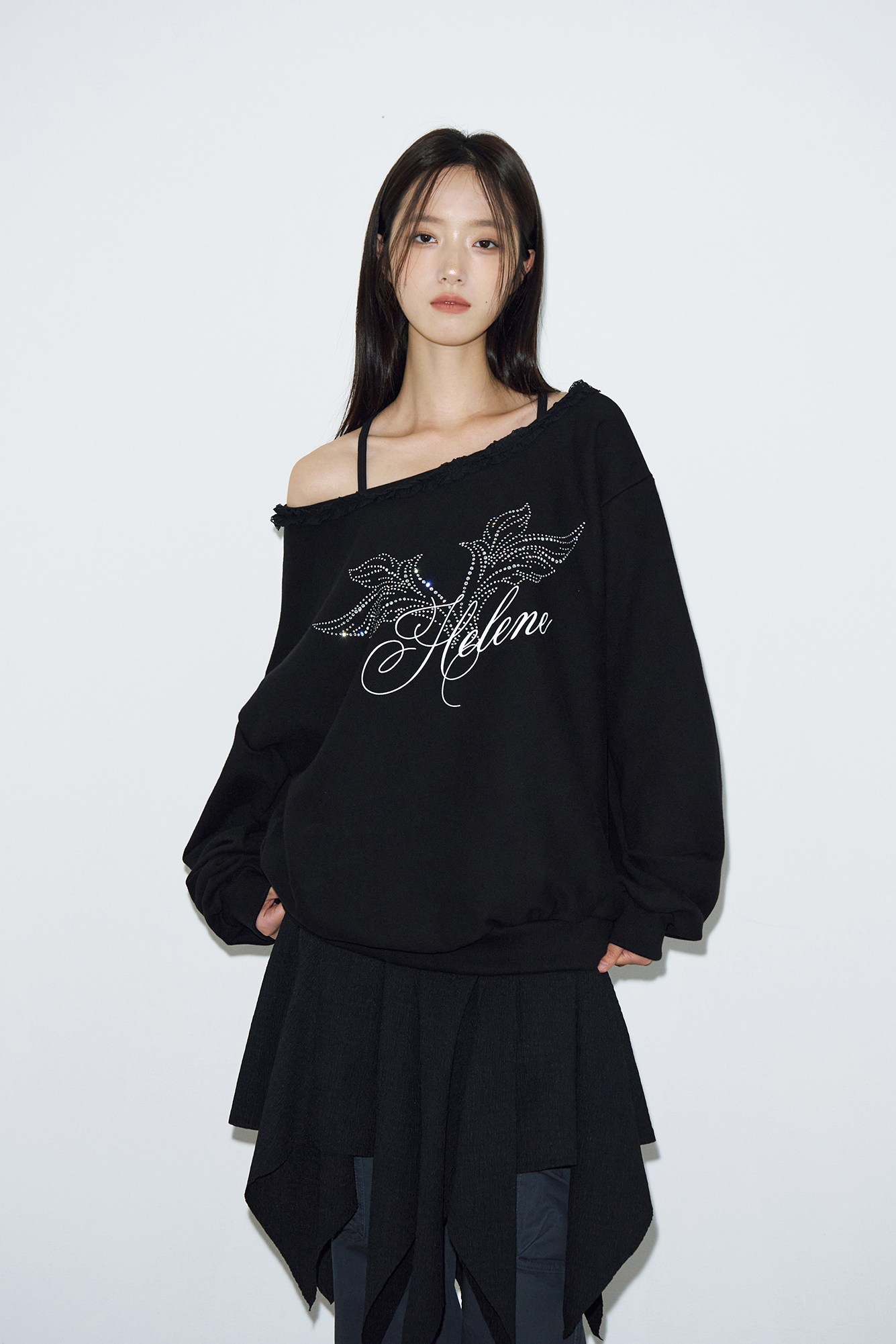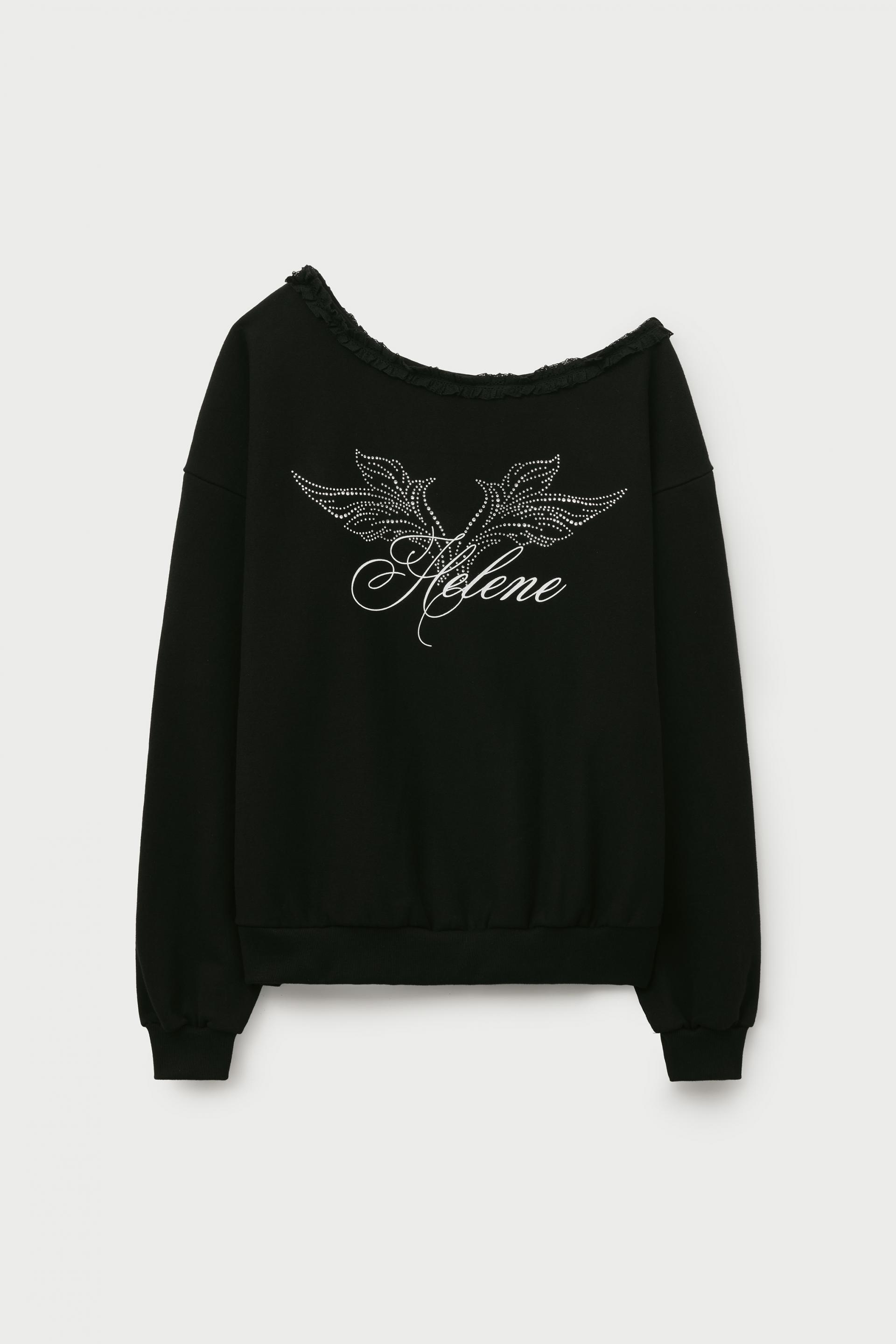 엔젤 레터링 원 숄더 스웨트셔츠 [블랙]