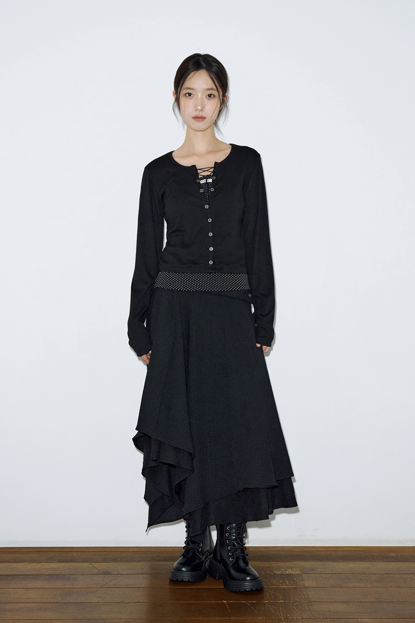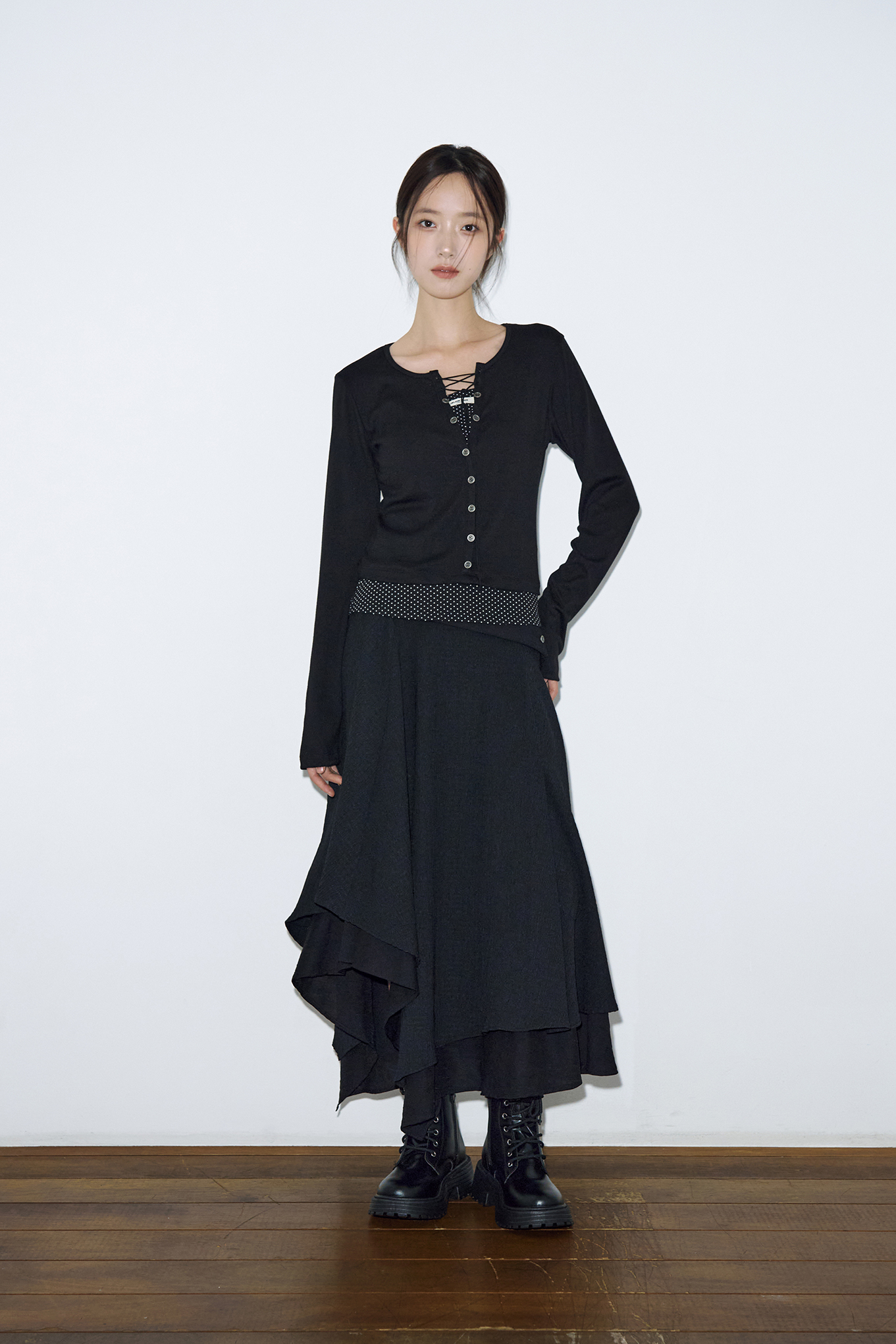 오레오 레이어드 스트링 롱 슬리브 [도트 블랙]