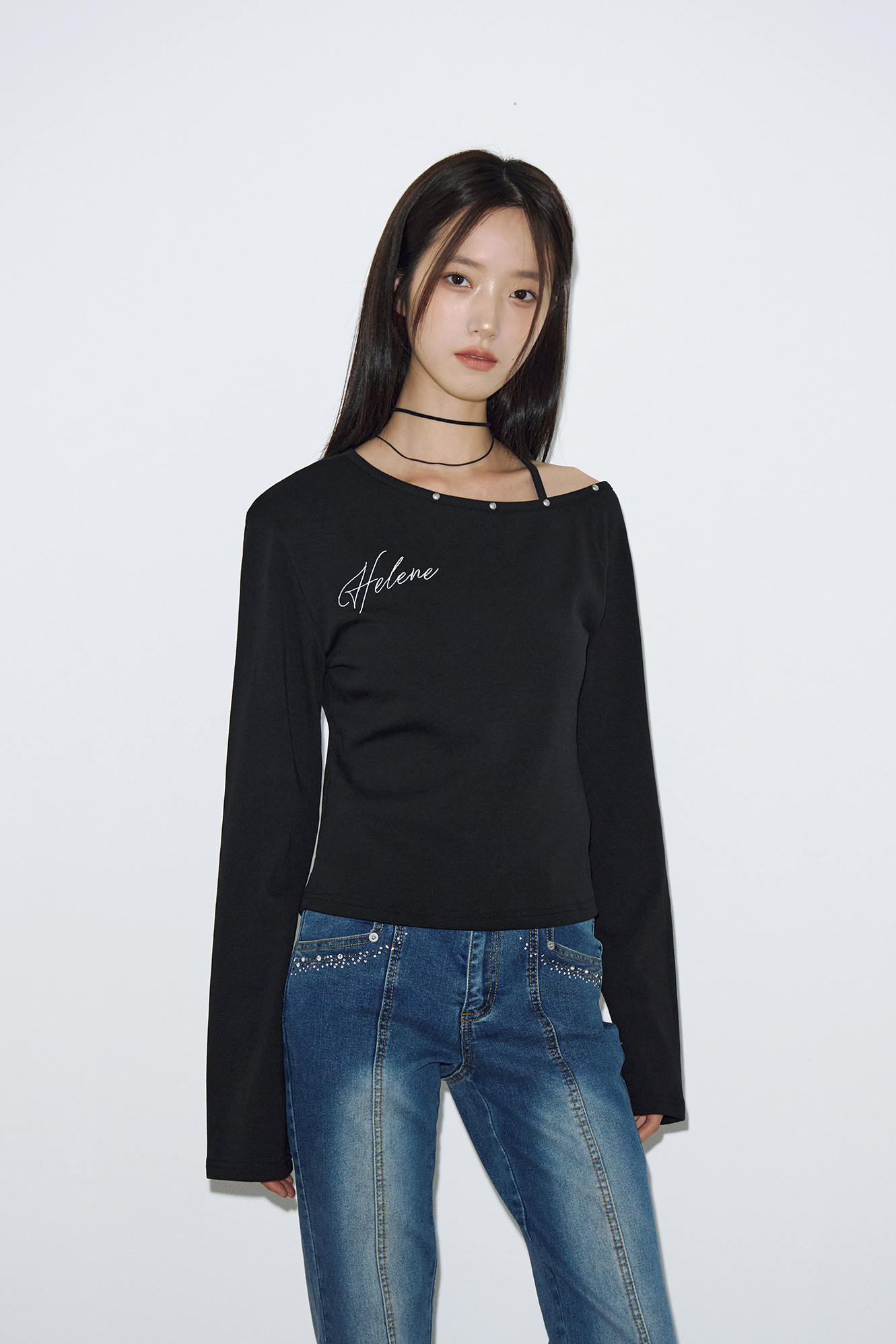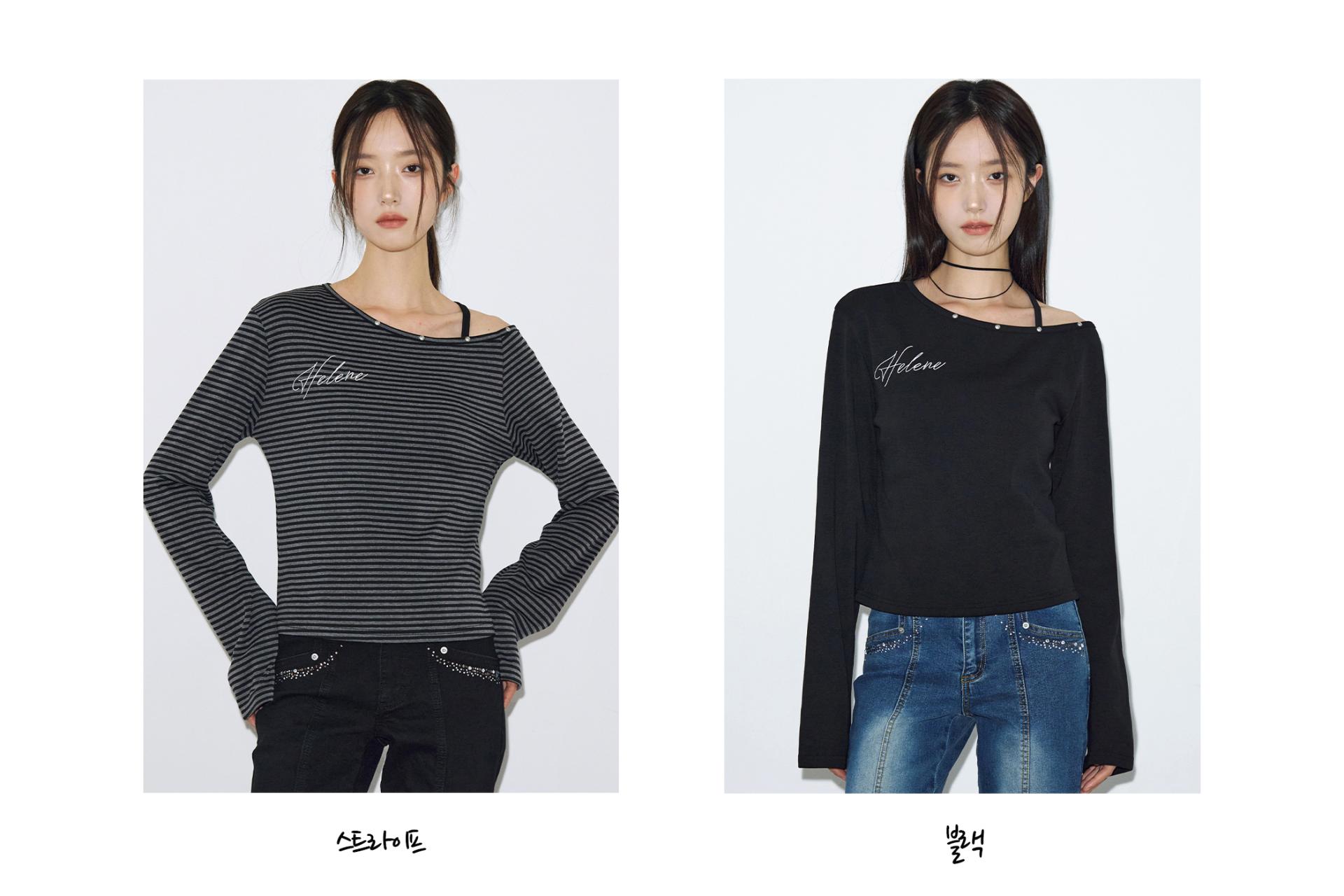 - 헬레네 아트 레터링 자수가 포인트가 되는 원 오프숄더 롱 슬리브입니다.