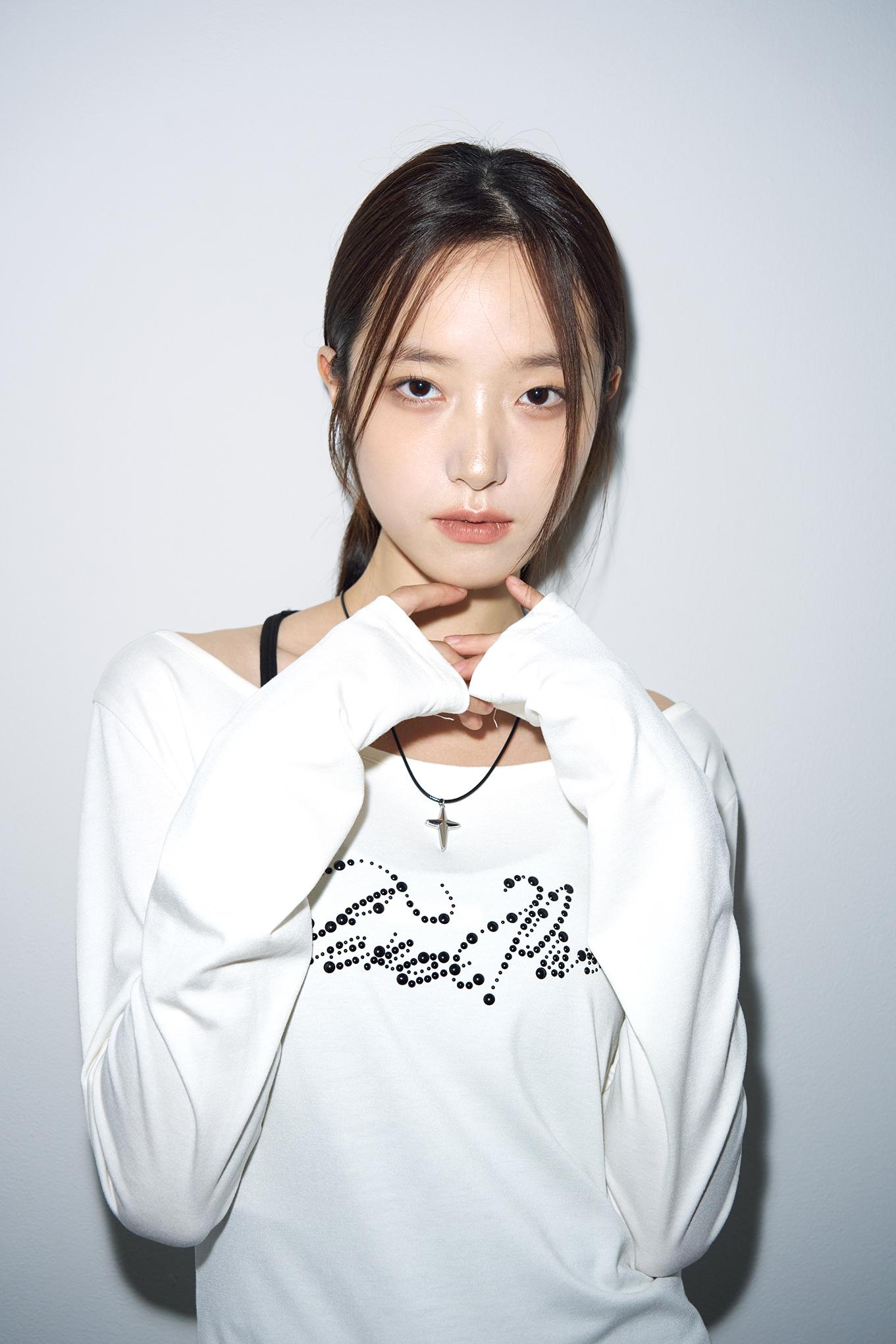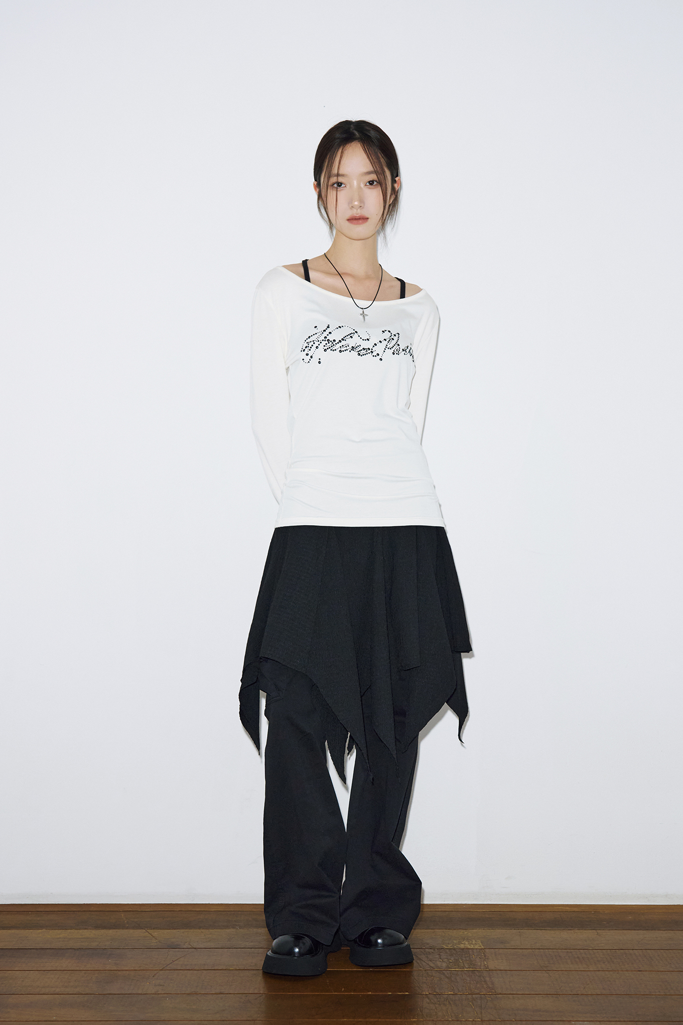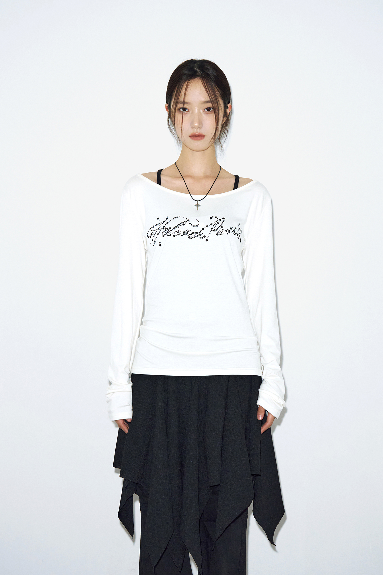 - 넓은 U넥으로 원 숄더로도 착용이 가능합니다.