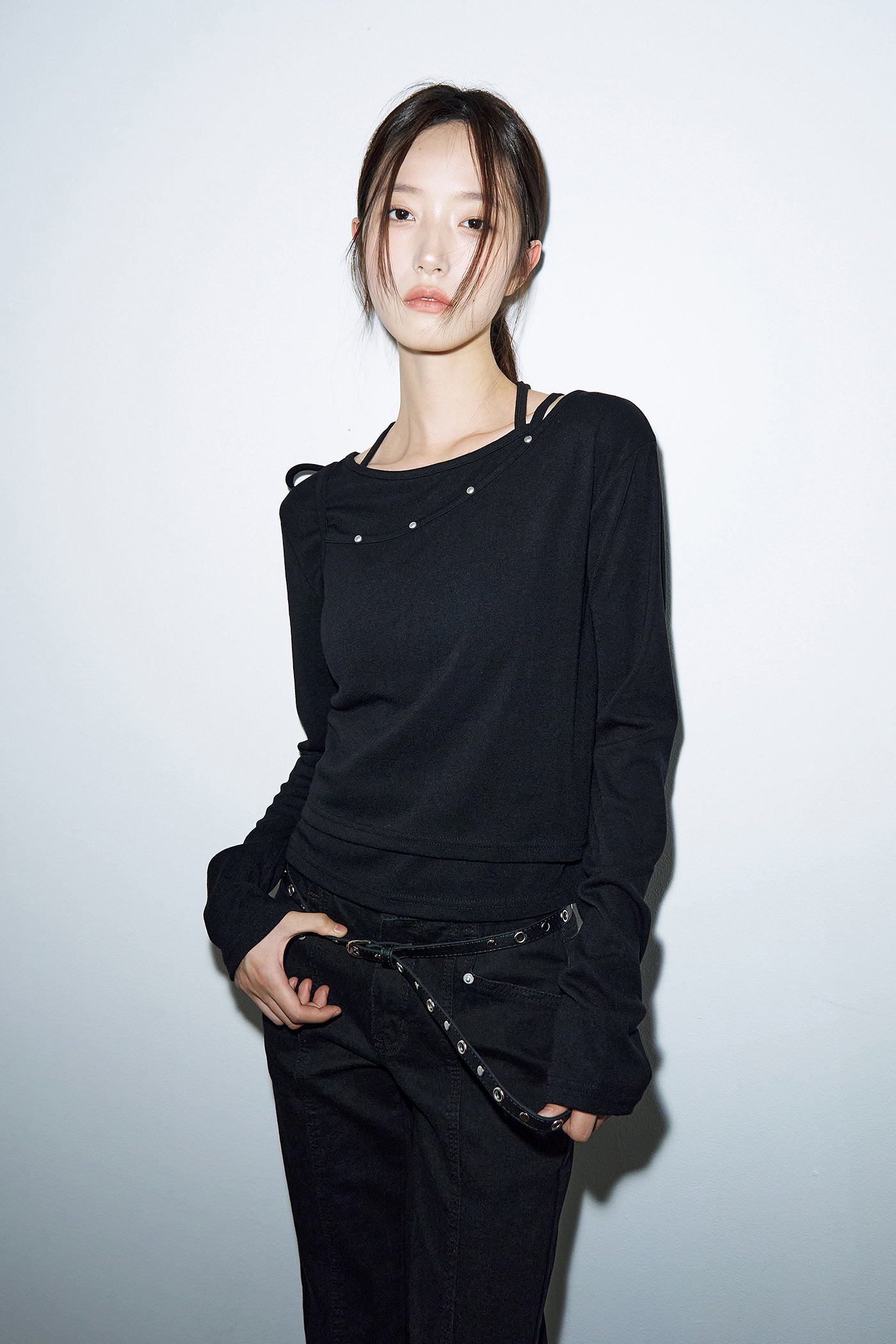 투 피스 레이어드 그레이버 롱 슬리브 [블랙]