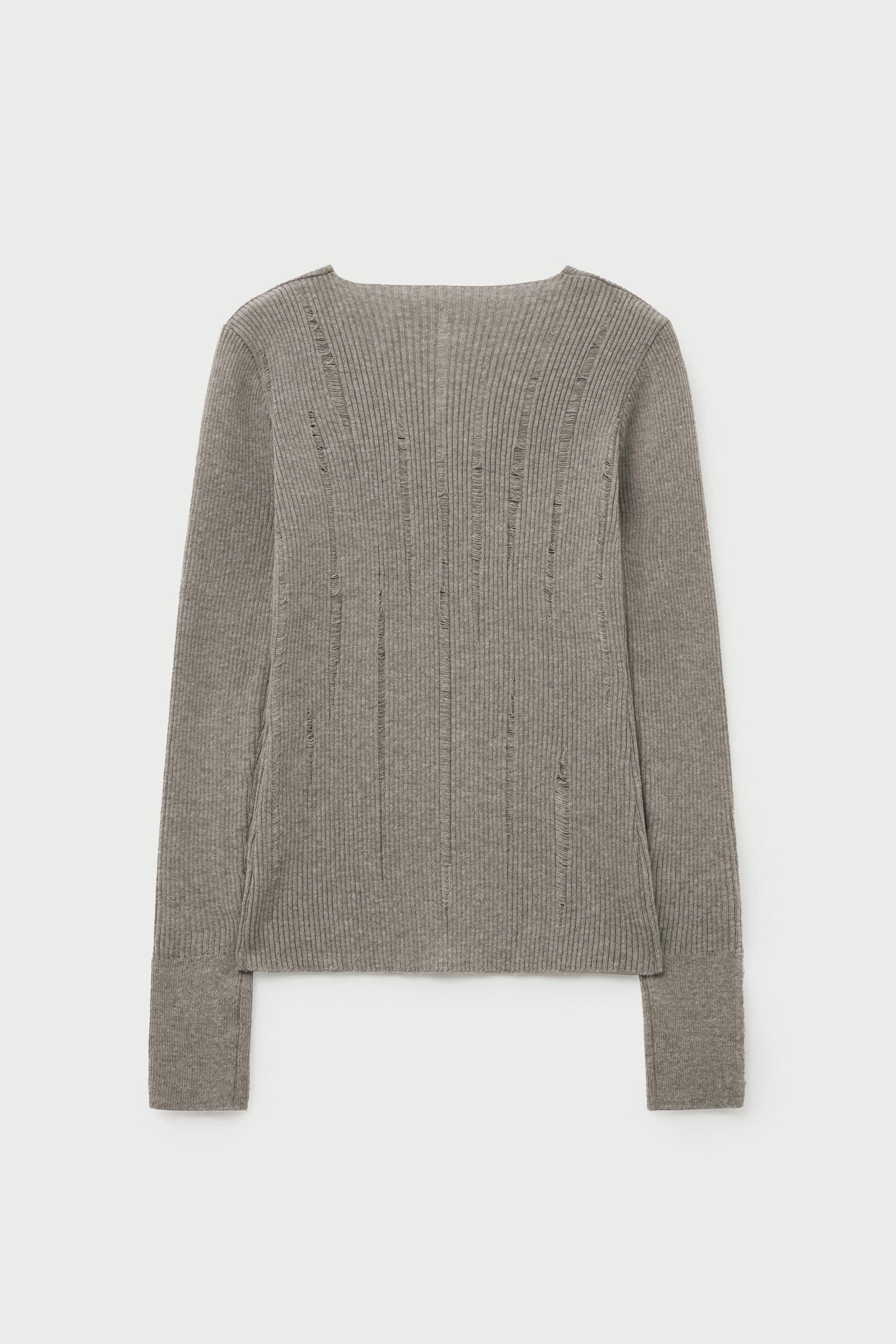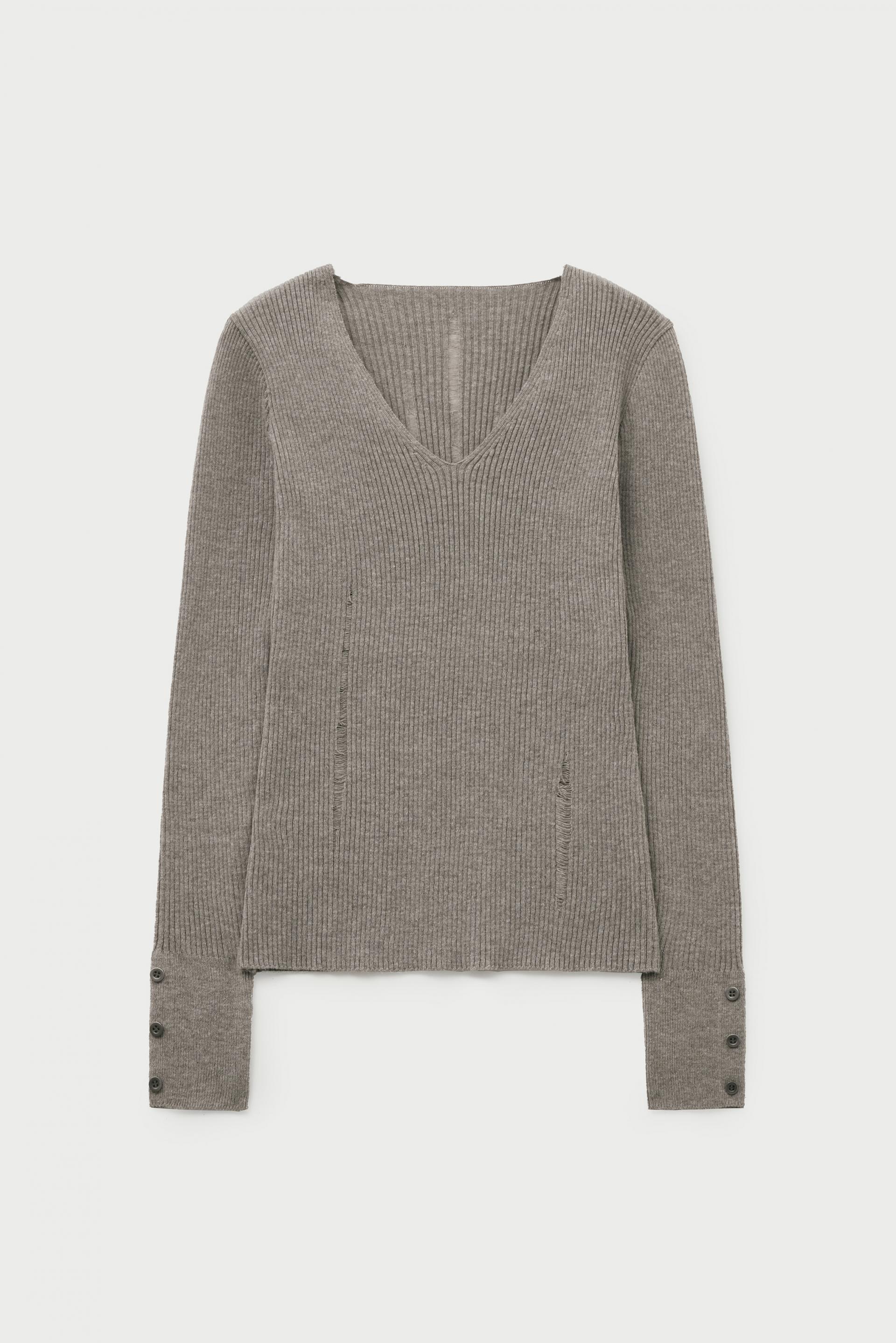 데미지드 브이넥 리브드 니트 [우드]