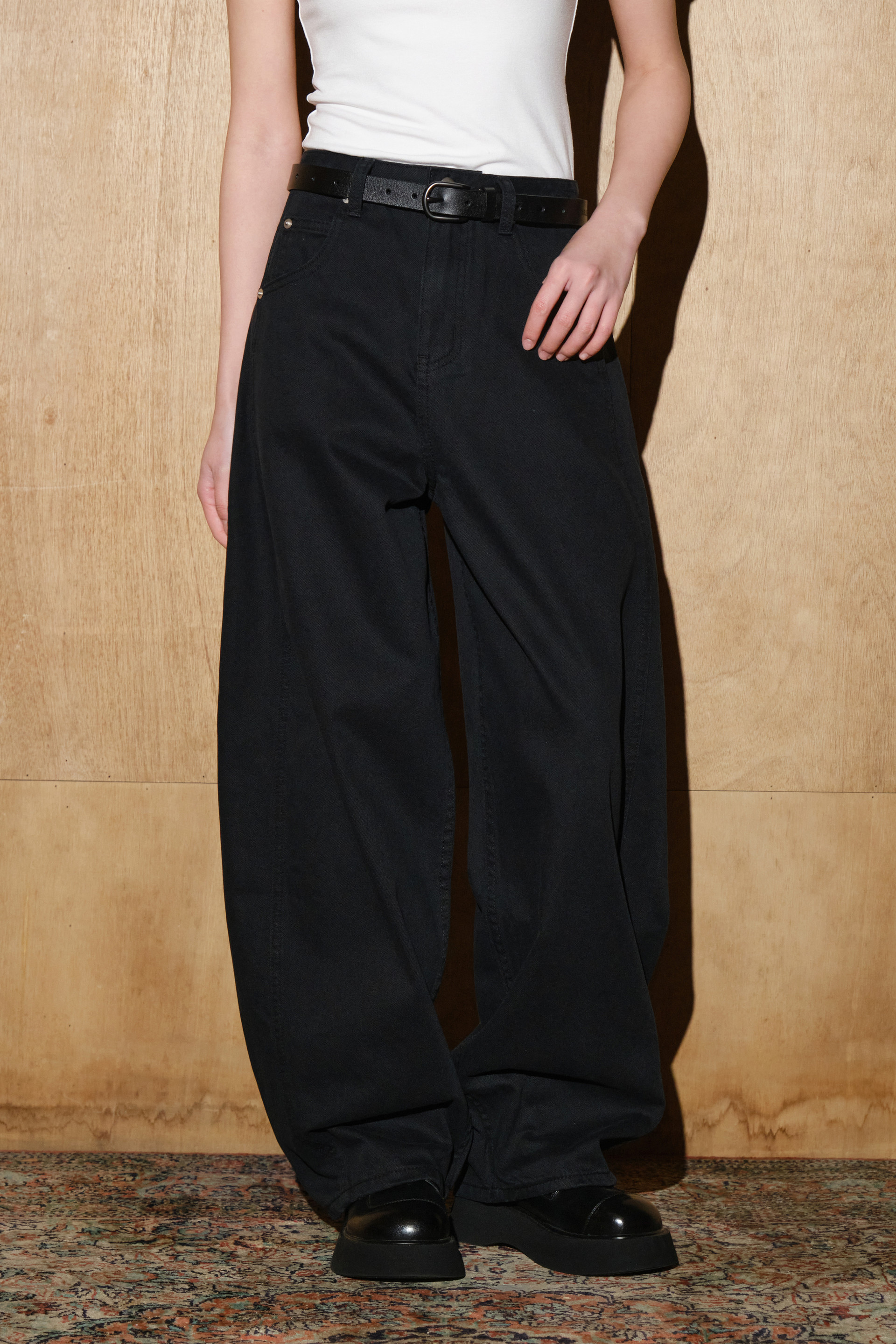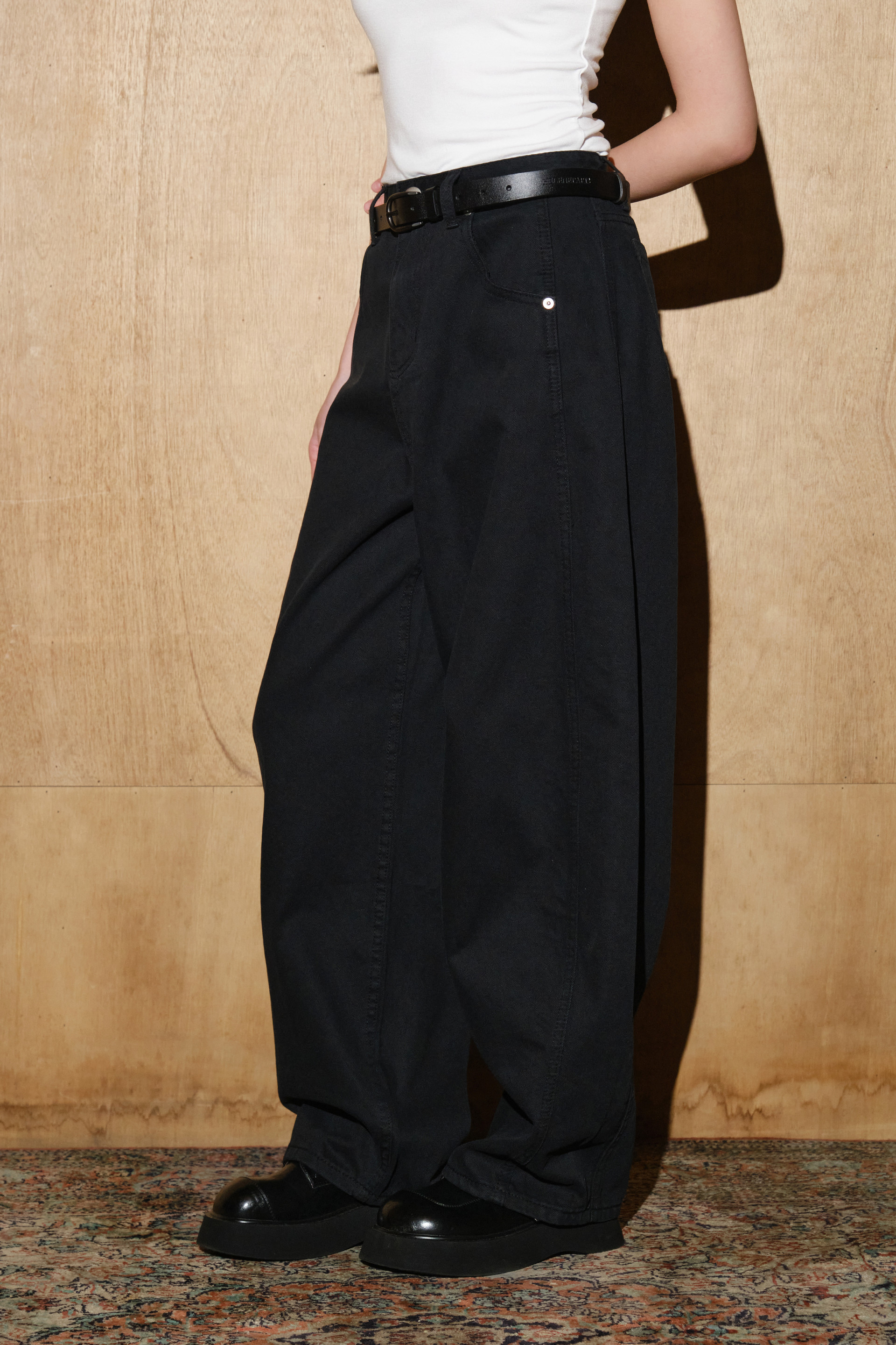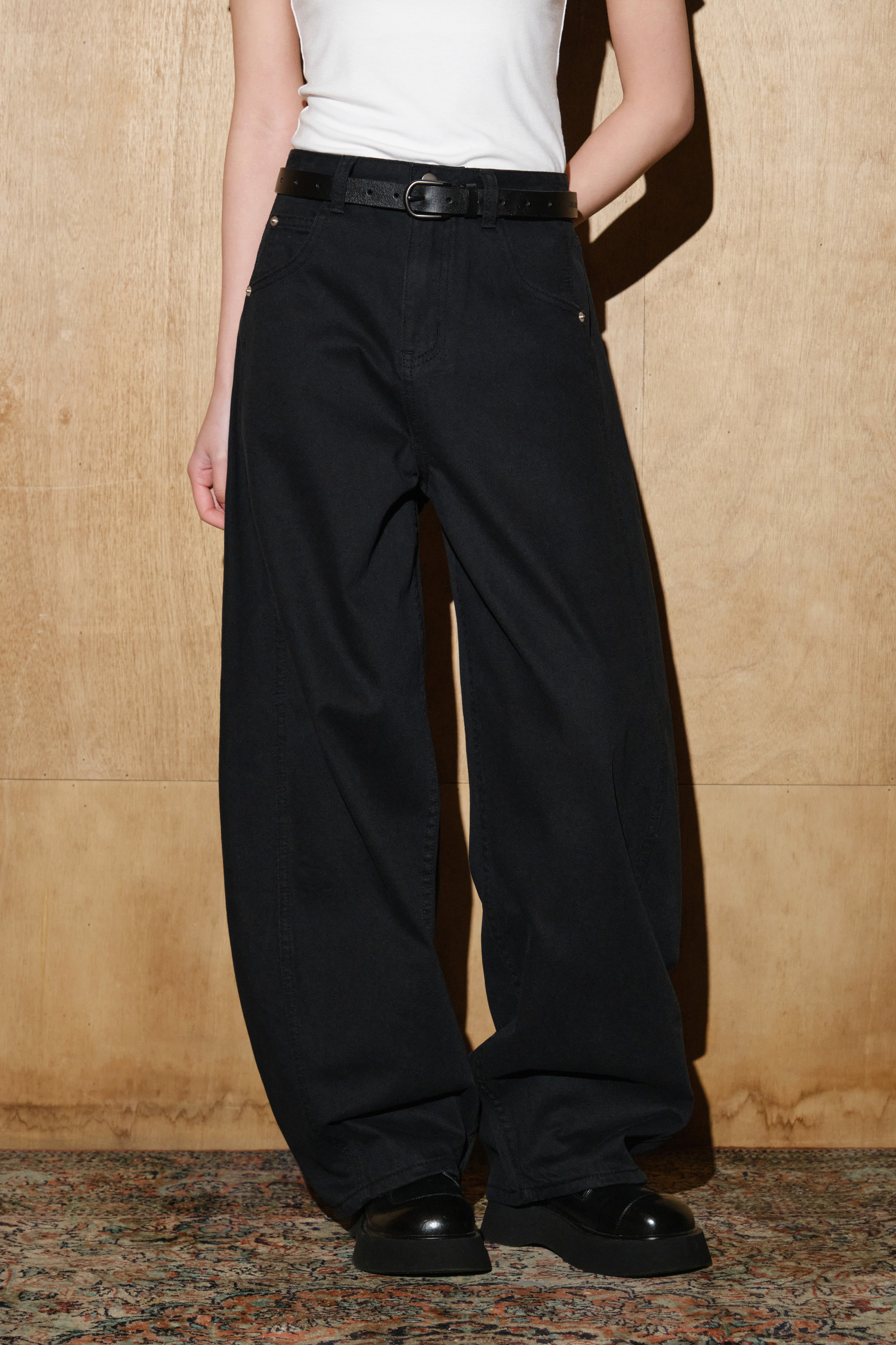 카치온 워시드 벌룬핏 스터드 팬츠 [블랙]