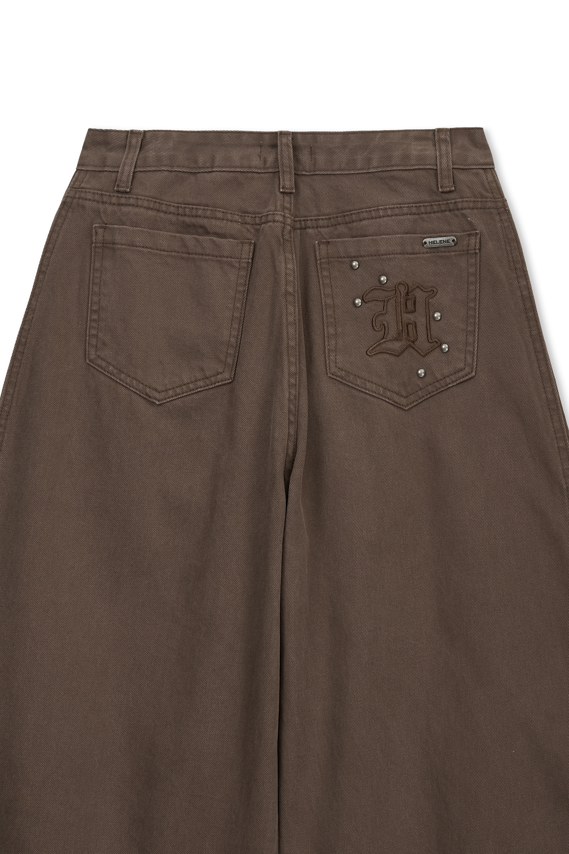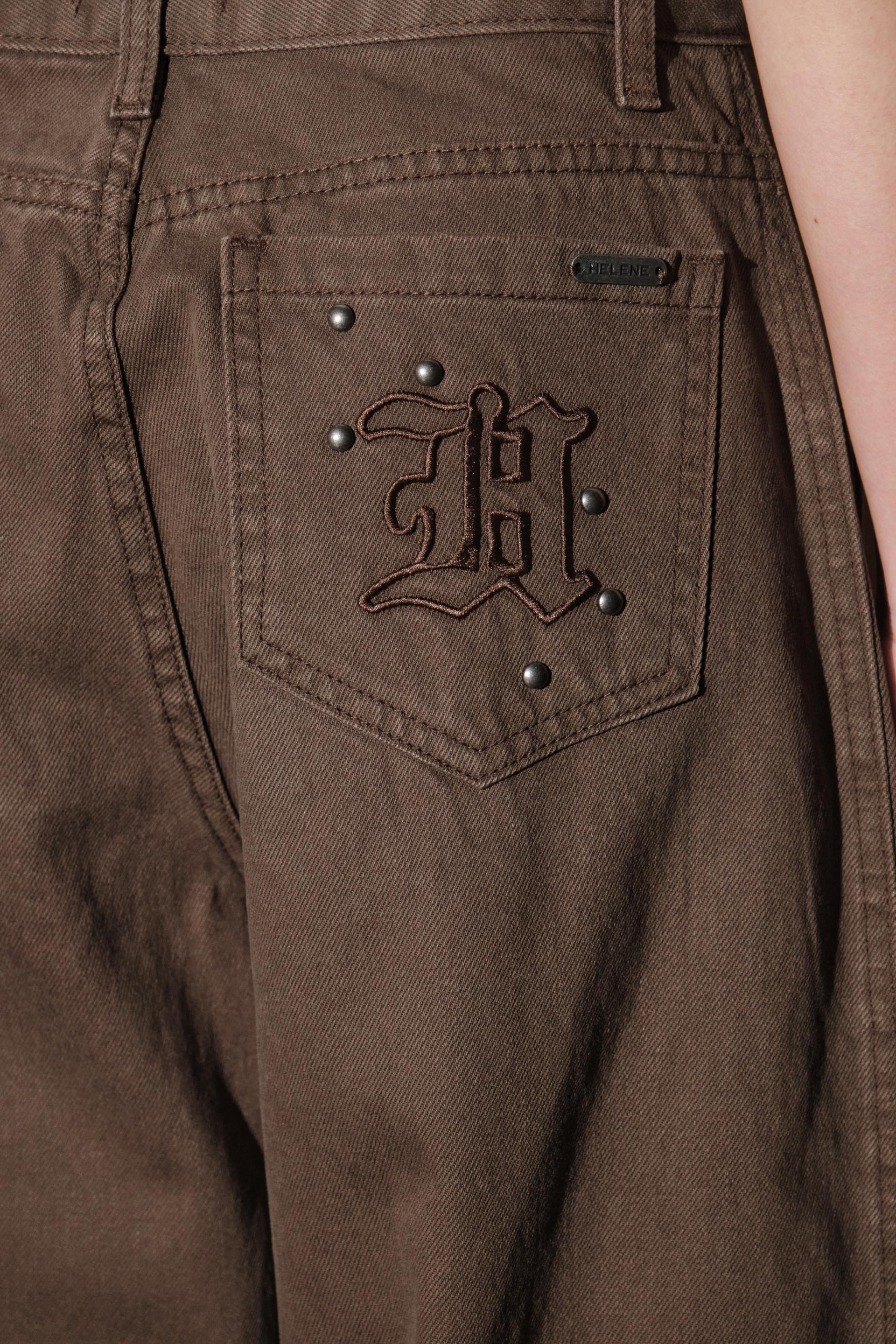 - 백 포켓 H 로고 자수에 앤틱한 스터드와 헬레네 그레이버 디테일을 더했습니다.