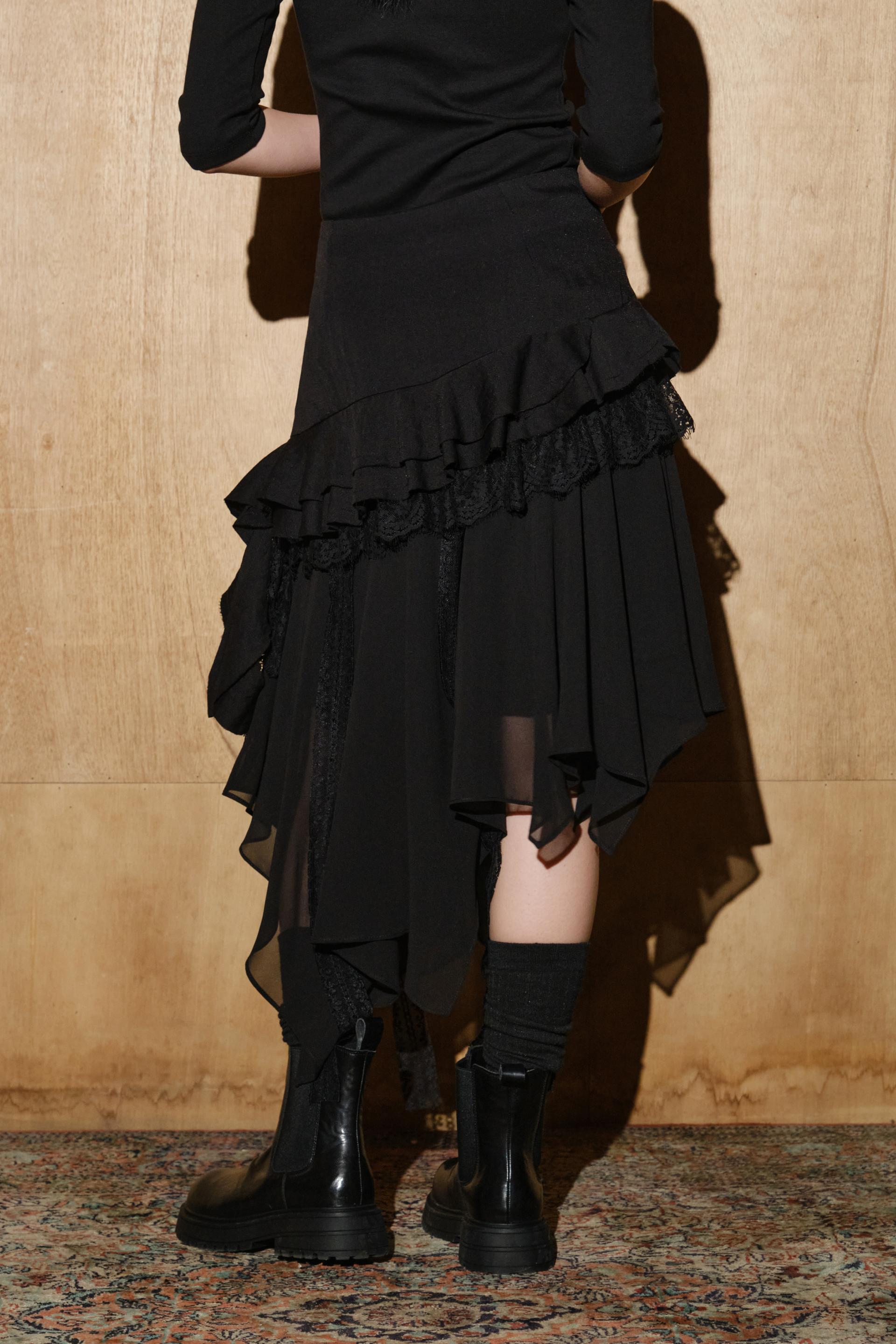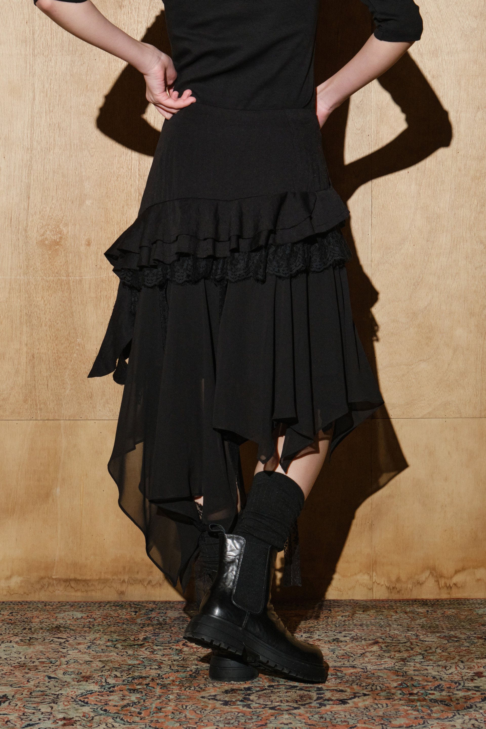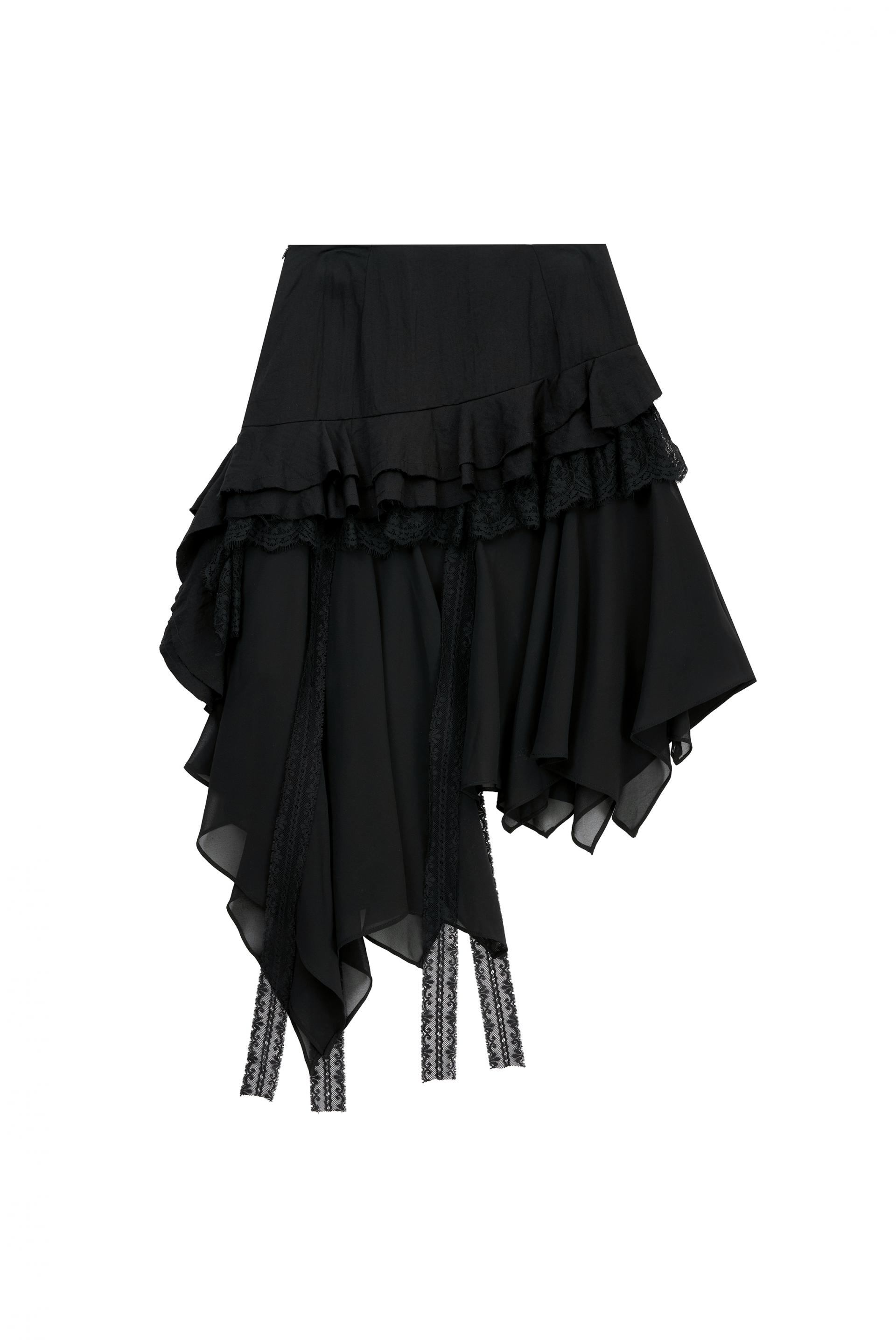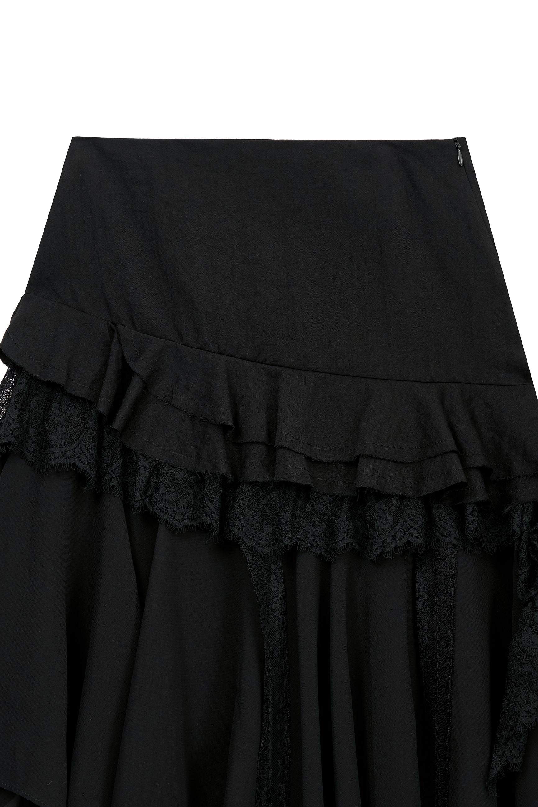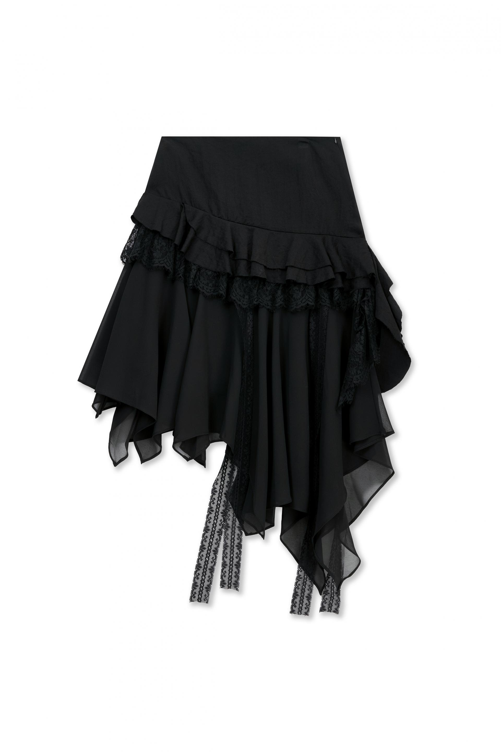 [3월 30일 예약배송] 언벨런스 프릴 레이스 스커트 [블랙]