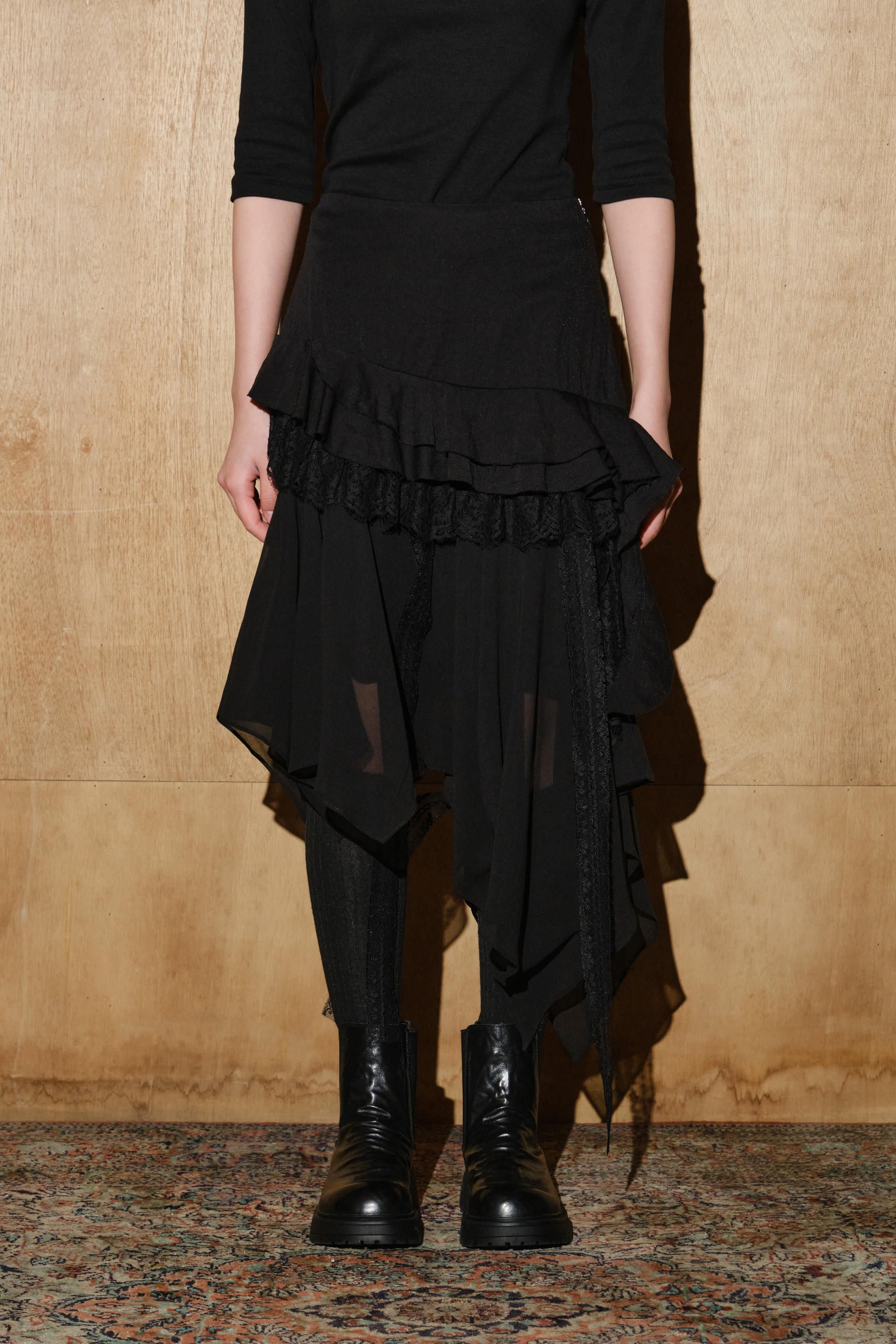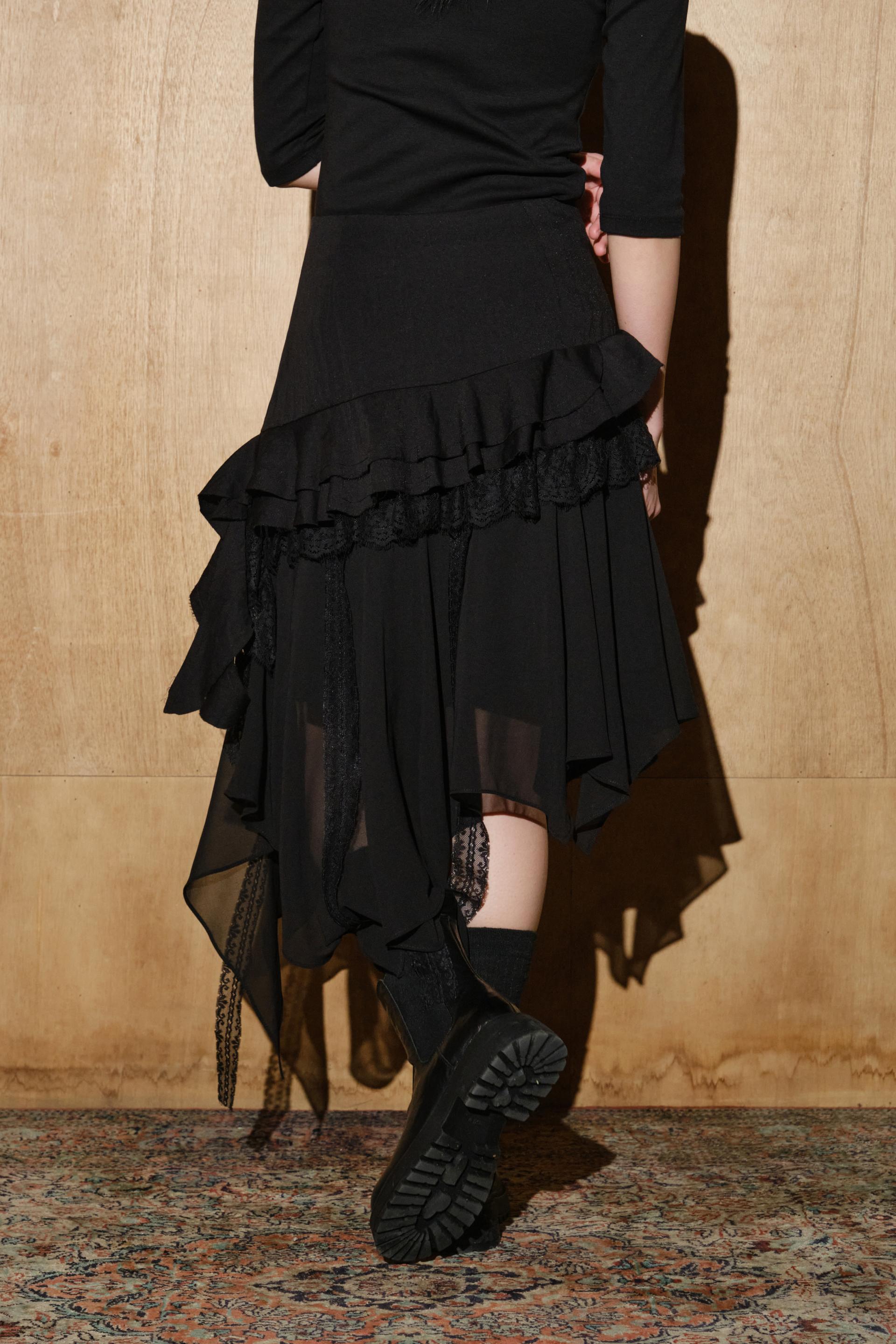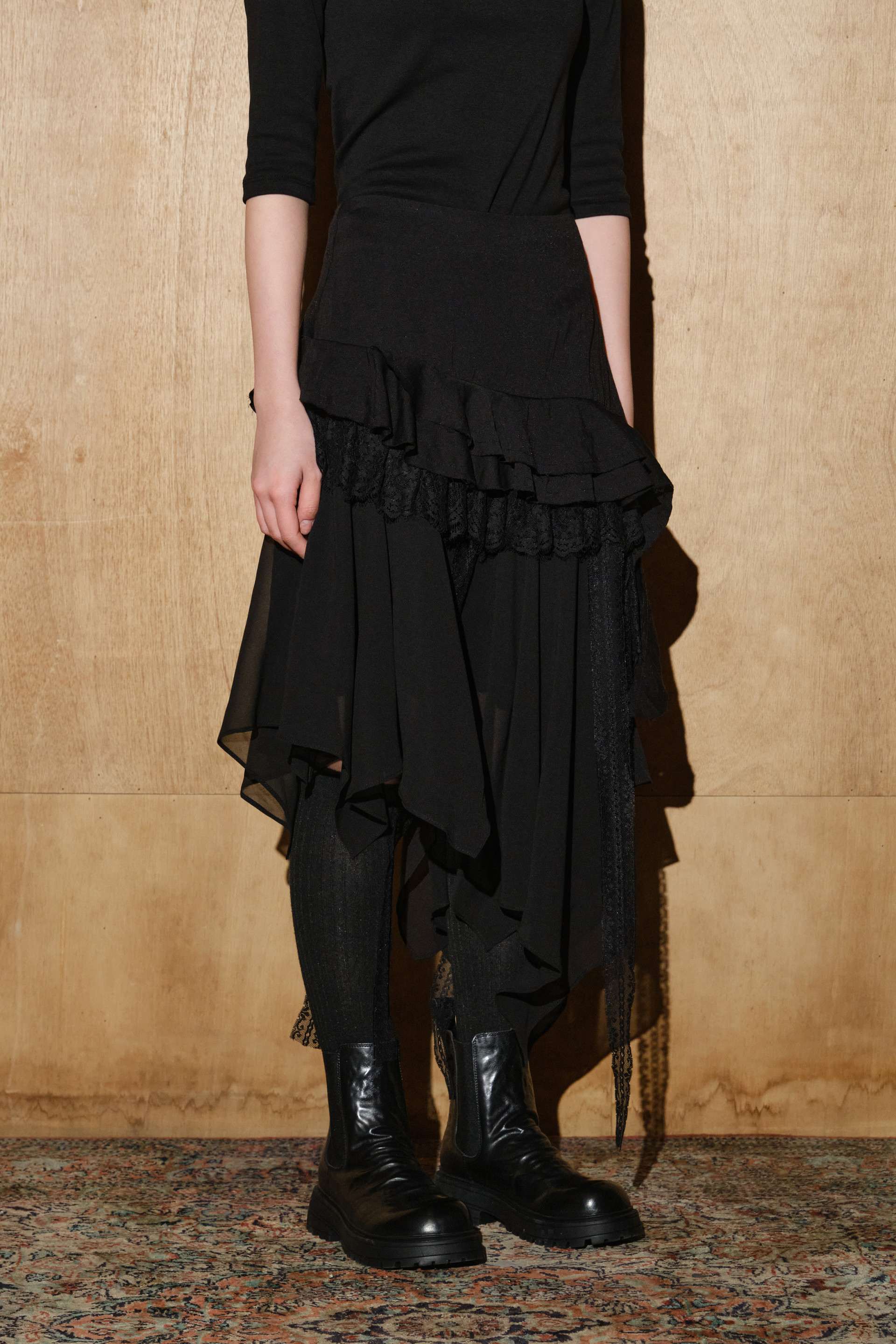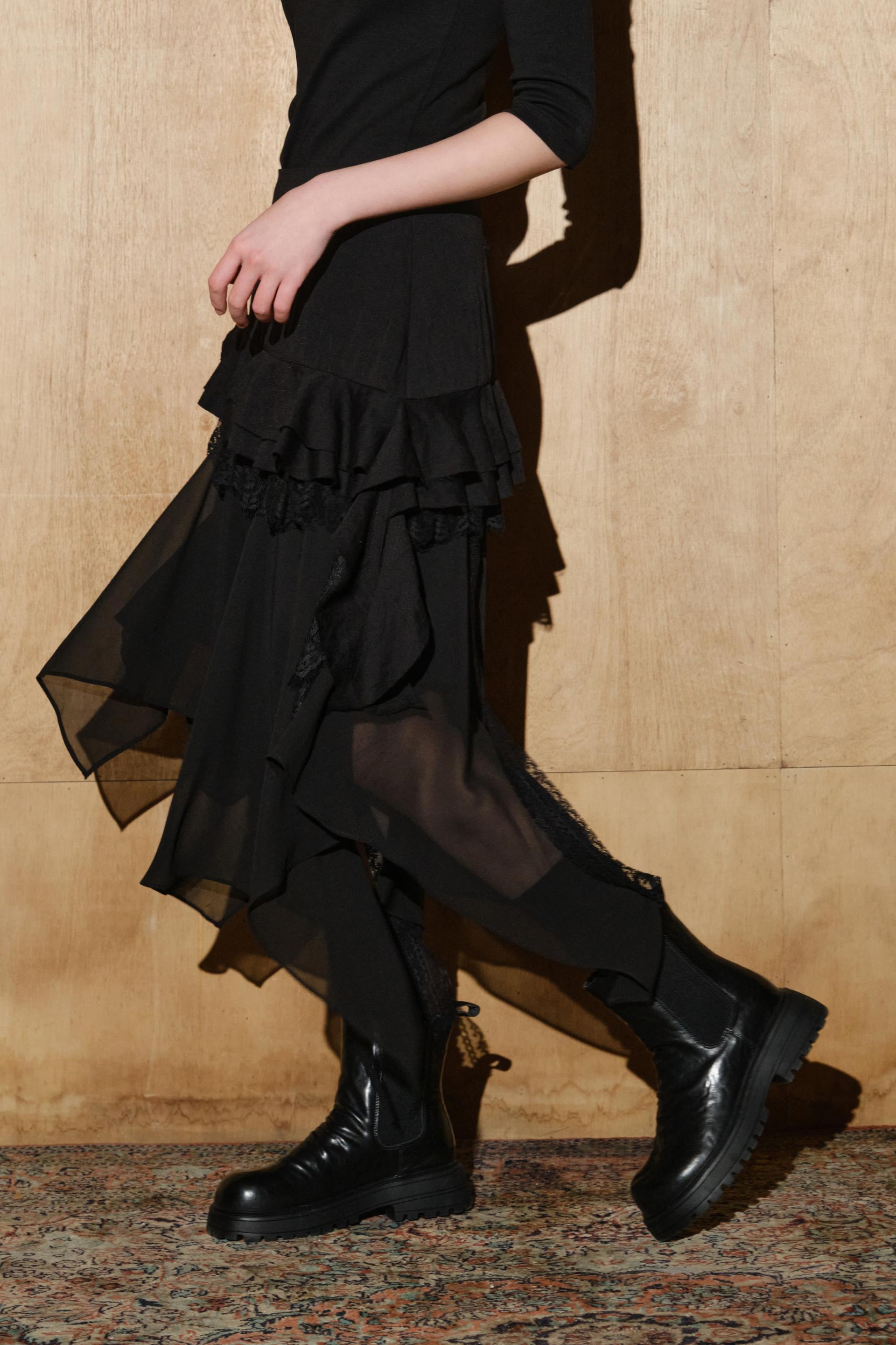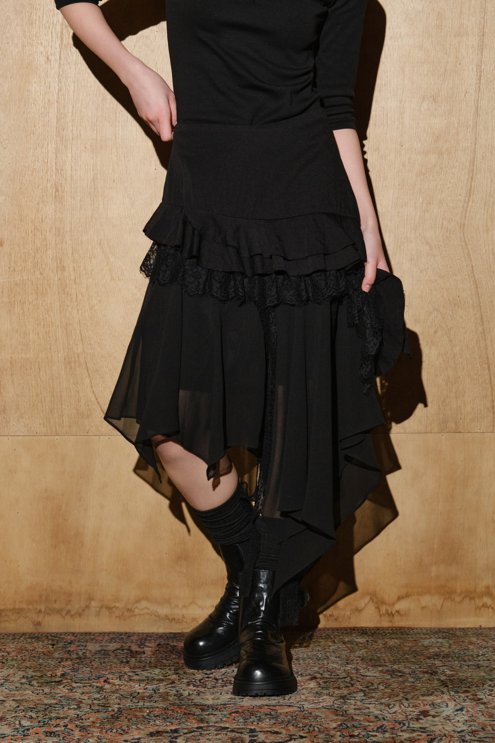 [3월 30일 예약배송] 언벨런스 프릴 레이스 스커트 [블랙]