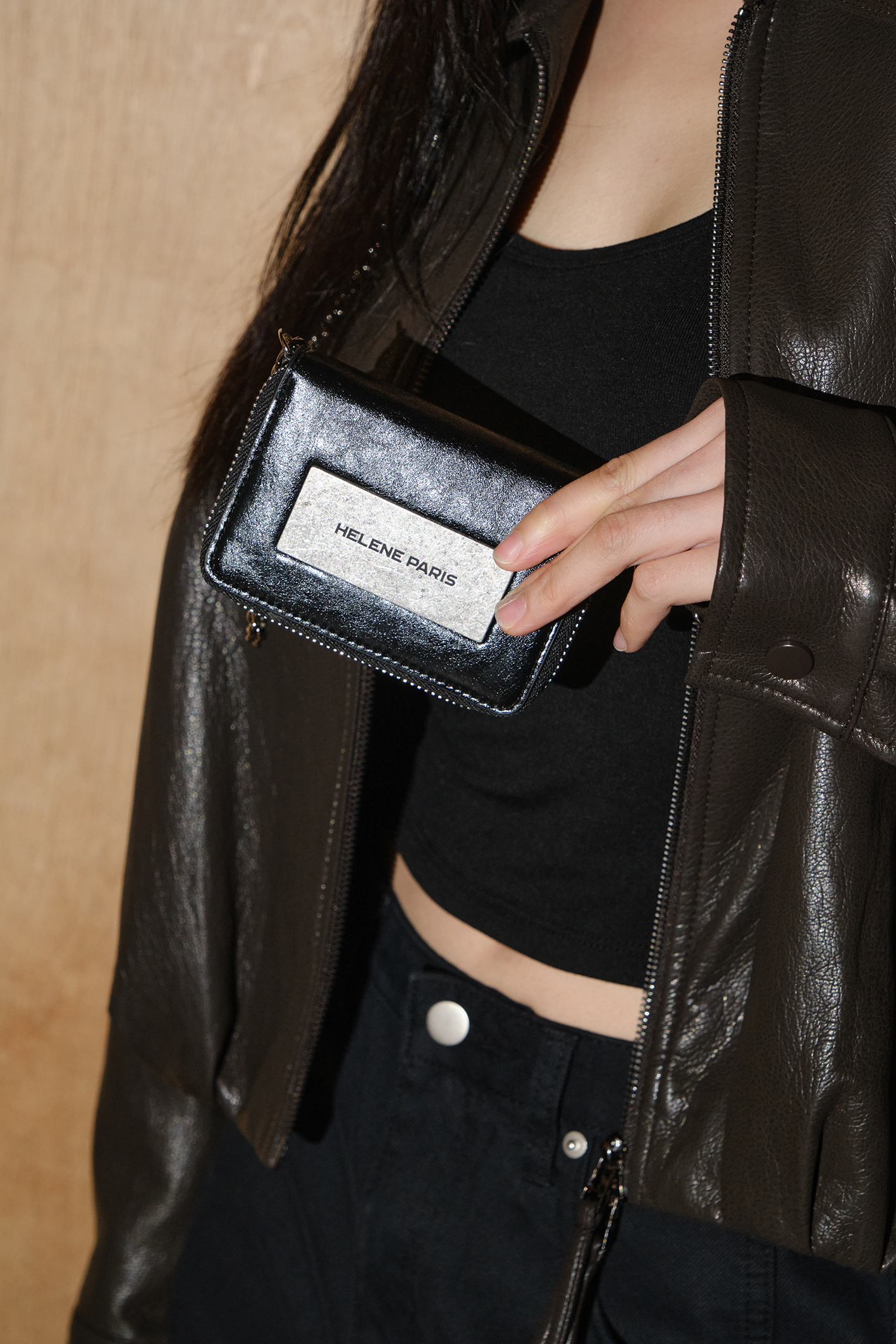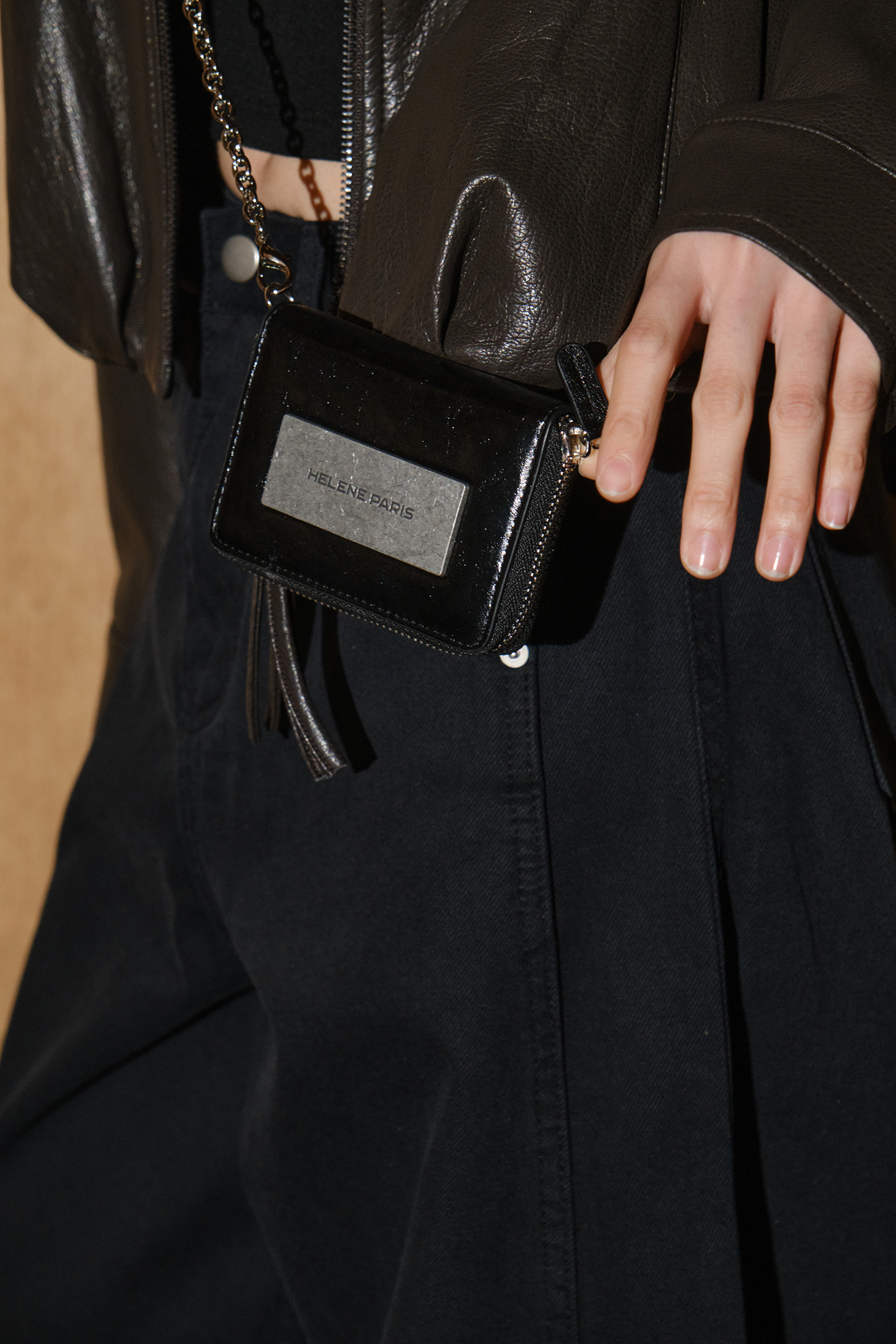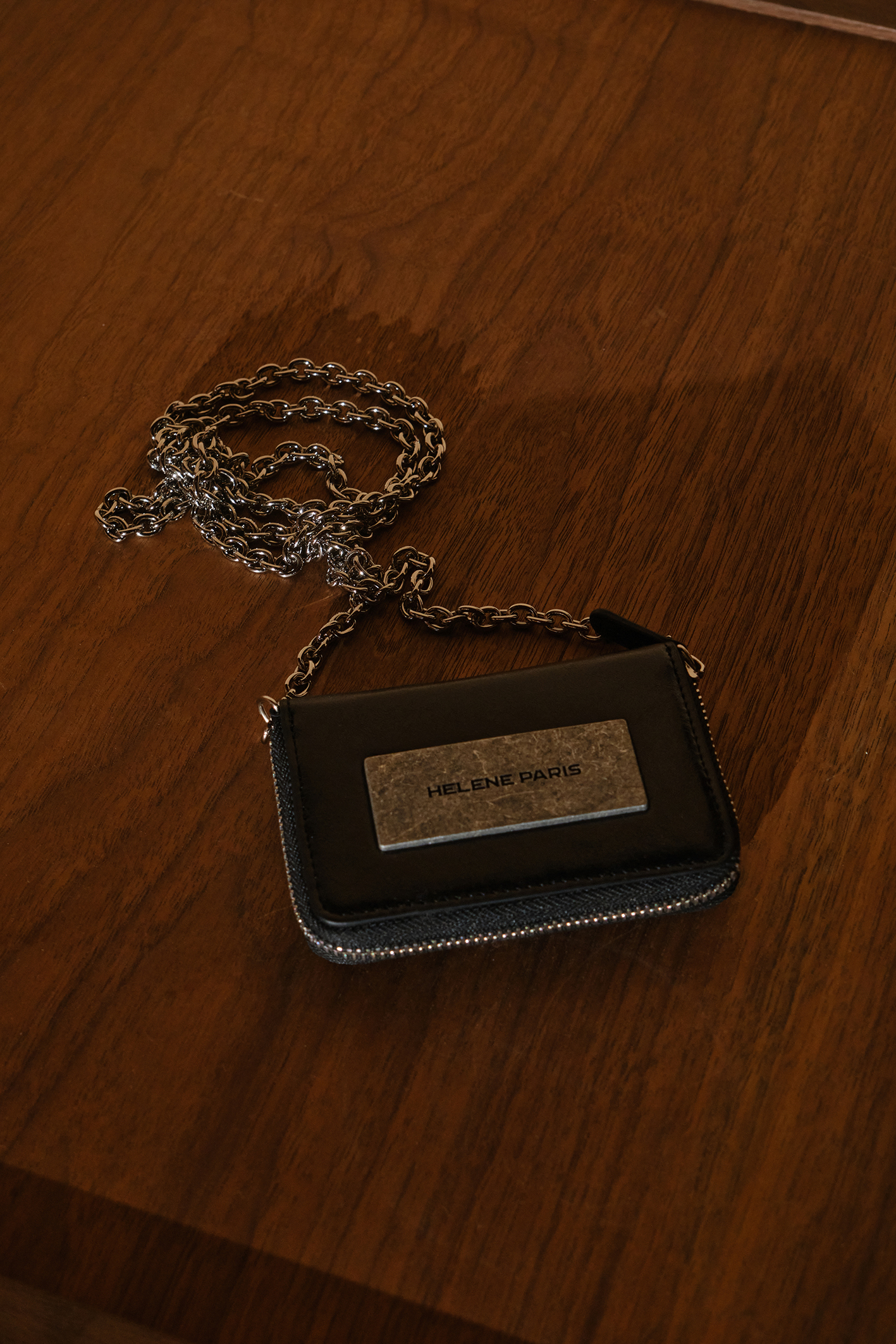 레더 메탈 로고 체인 월렛 [블랙]
