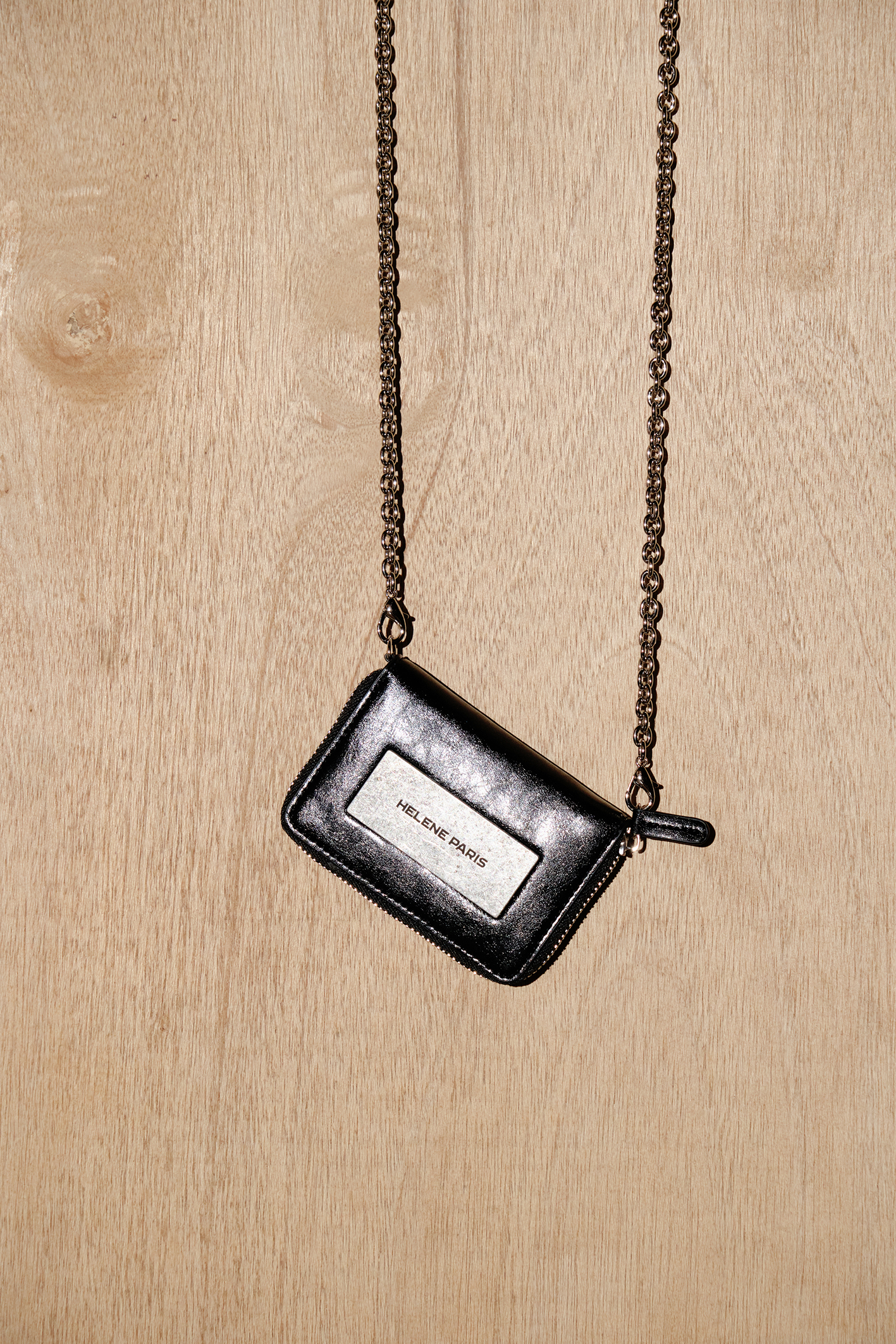 - 탈부착 가능한 체인 디테일을 더한 로고 레더 월렛입니다.