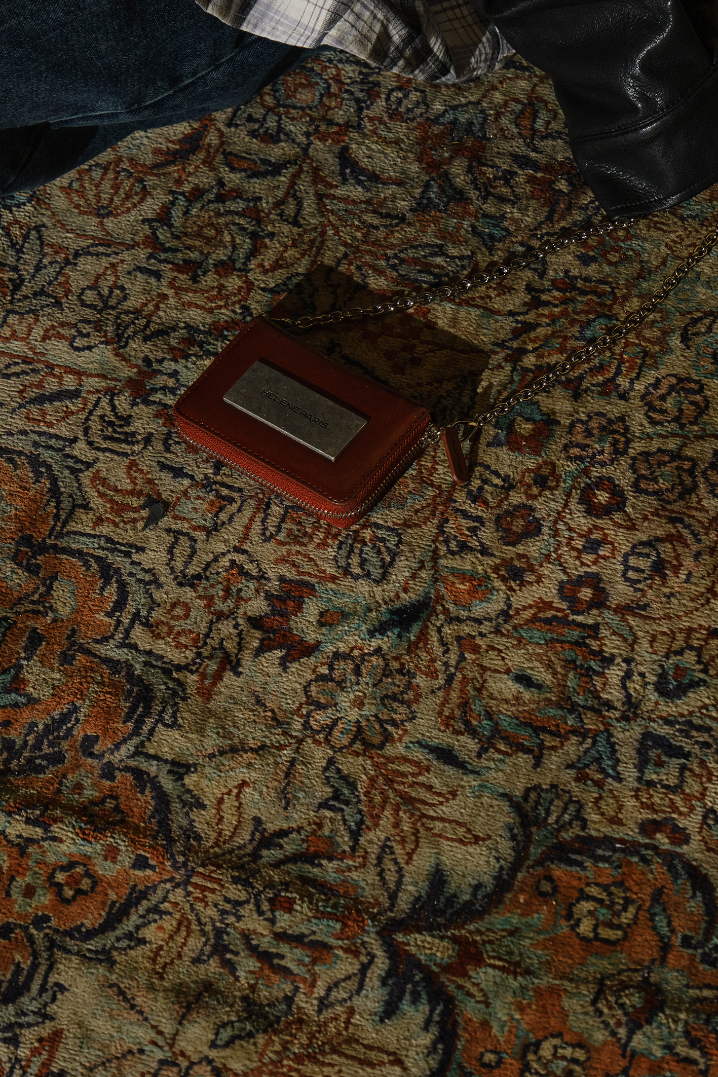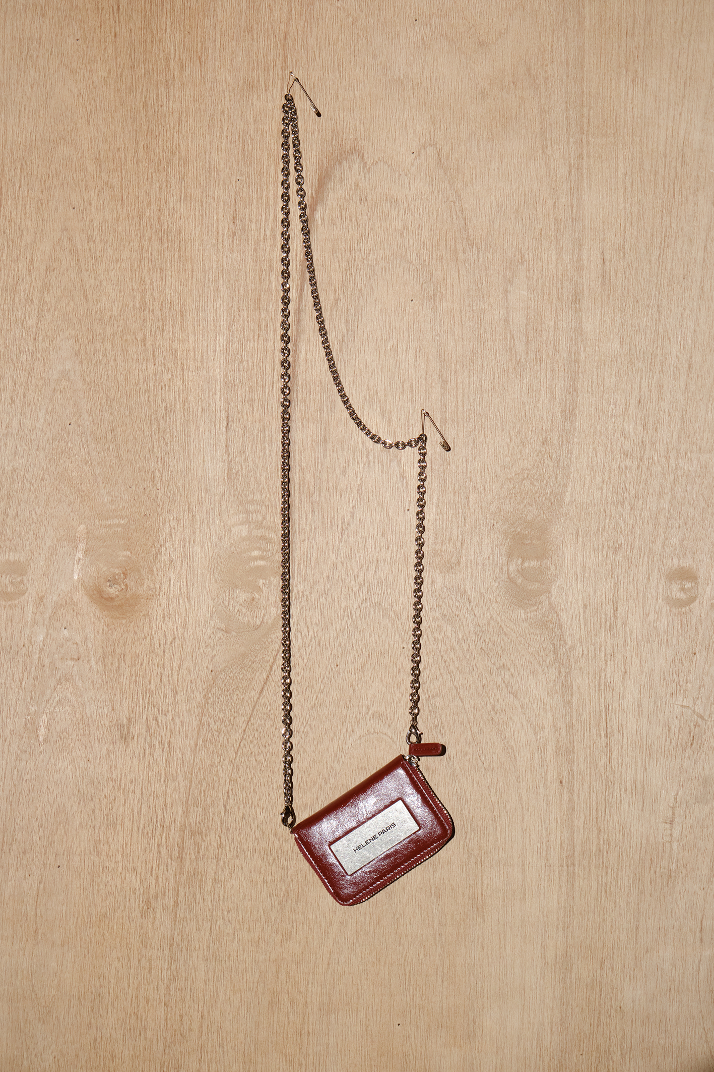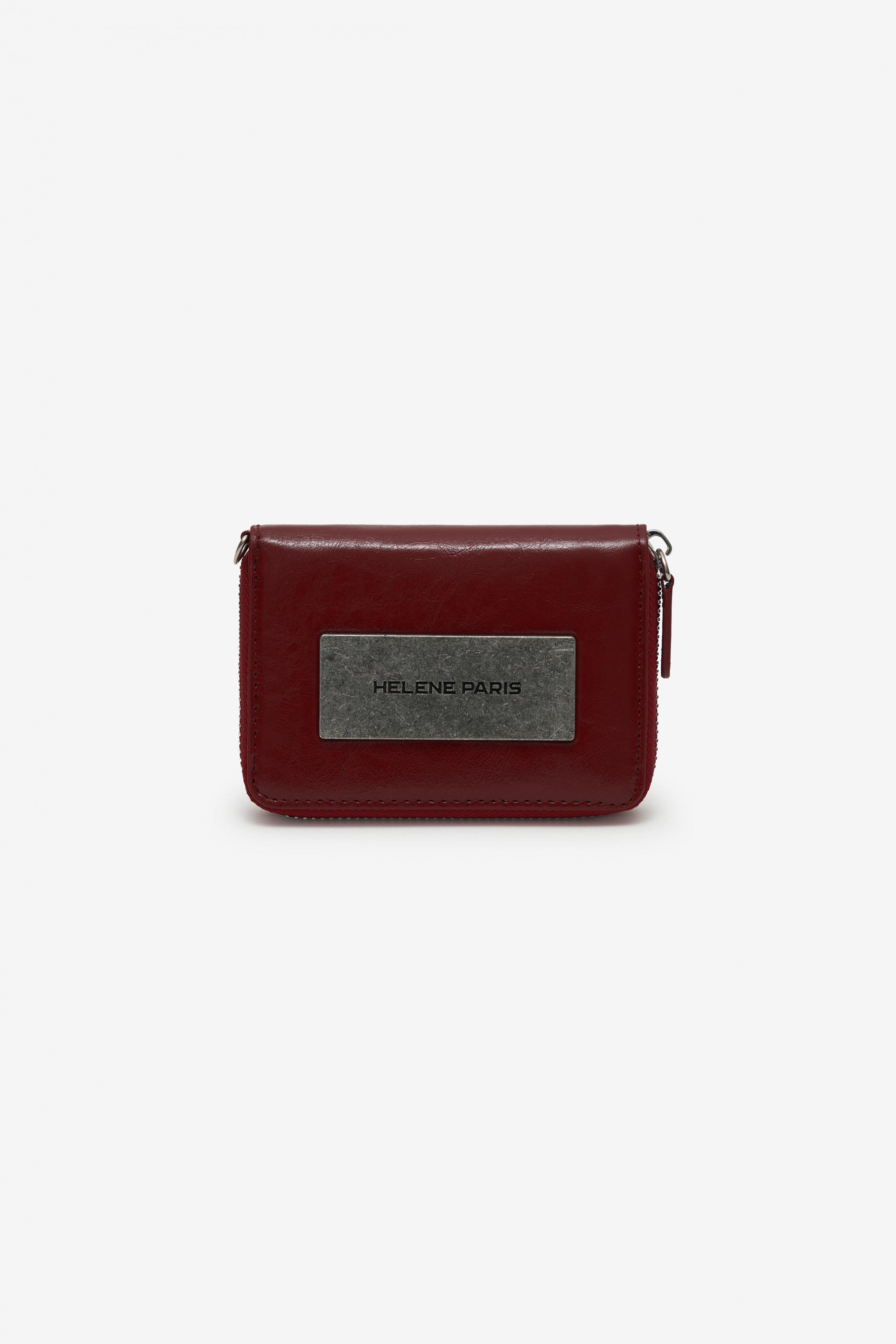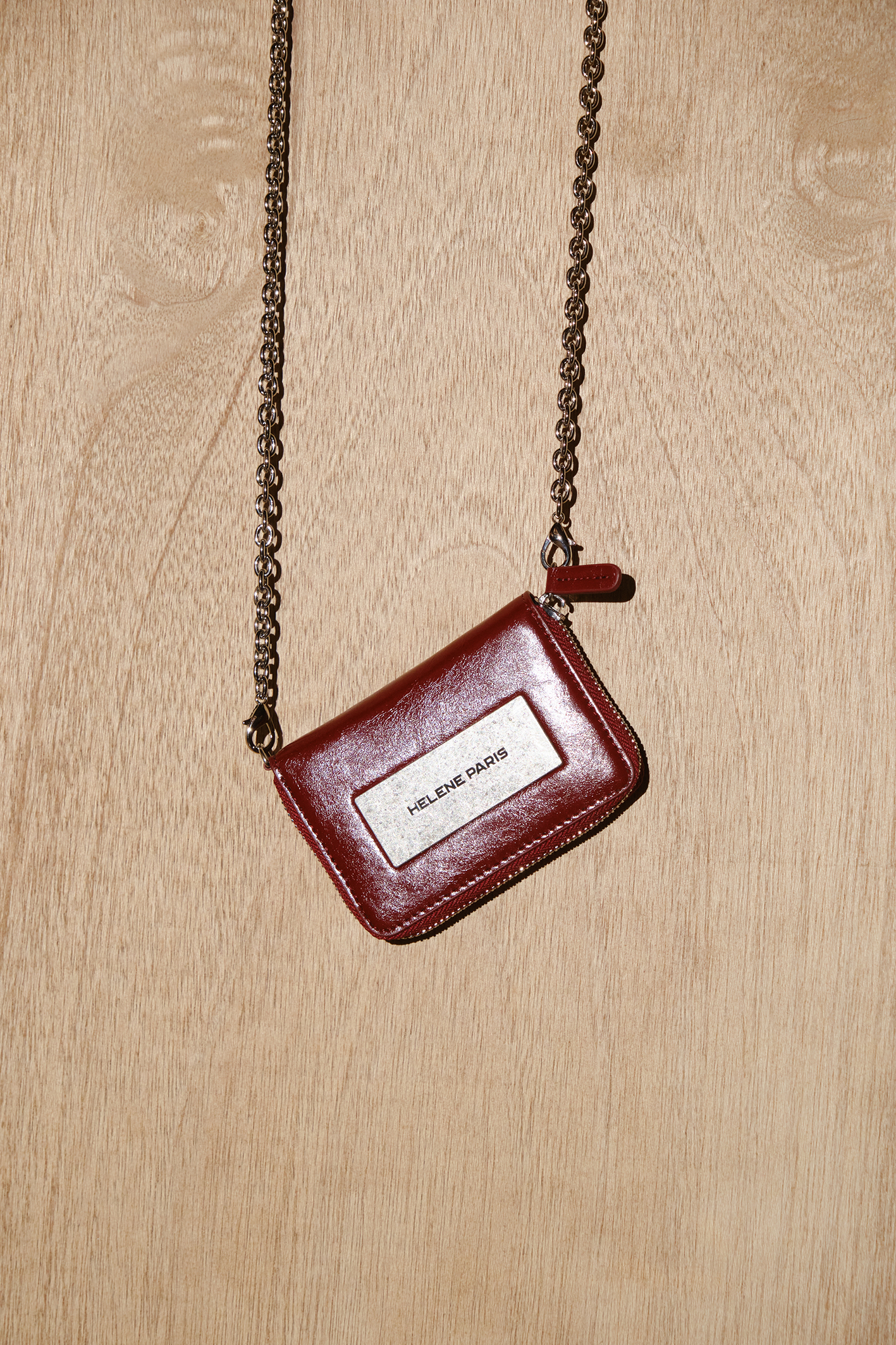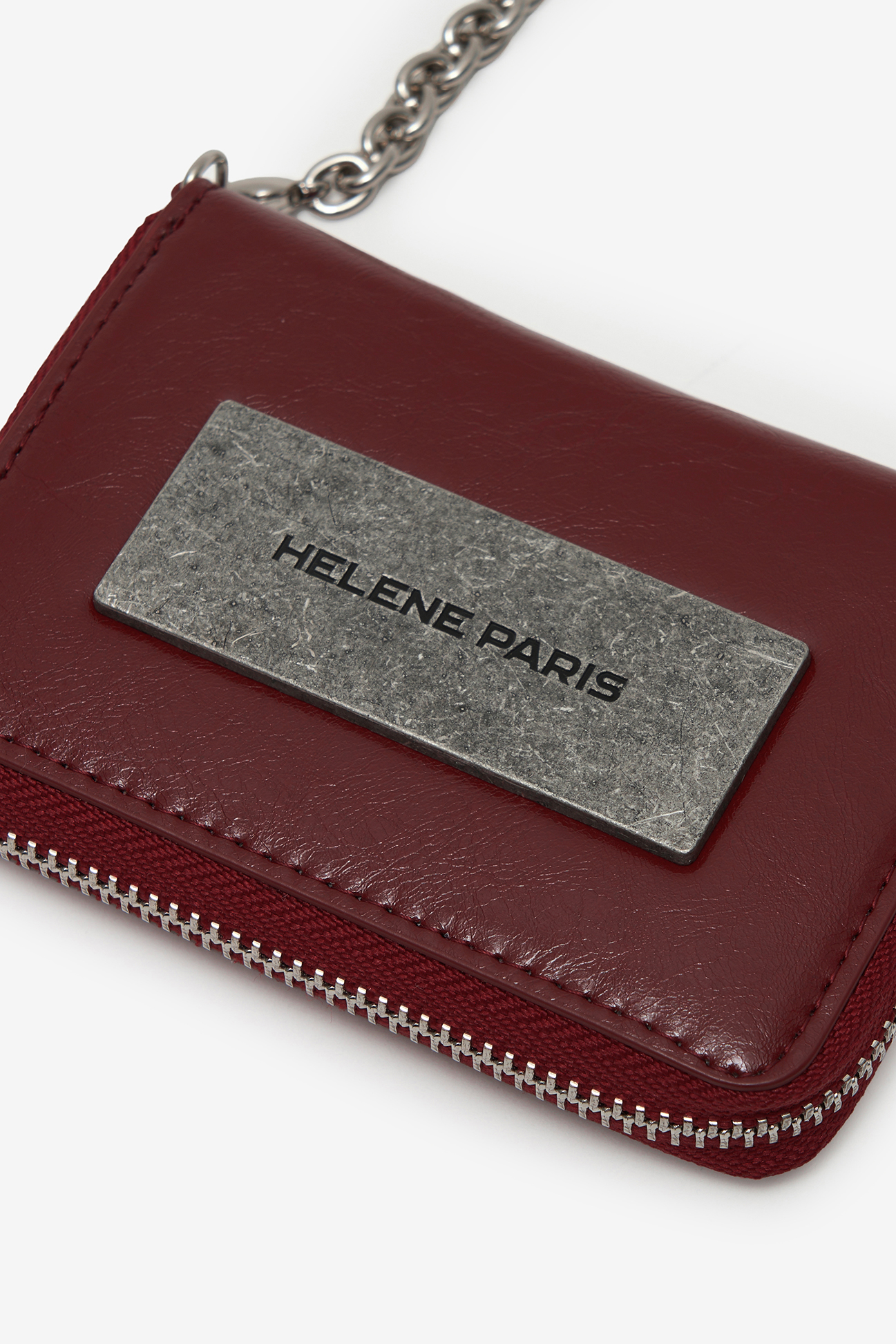 레더 메탈 로고 체인 월렛 [버건디]