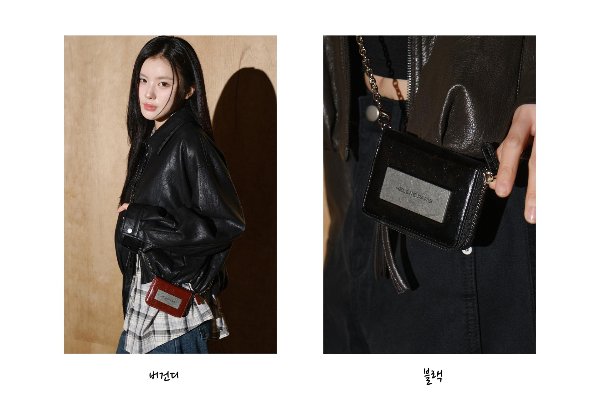 - 탈부착 가능한 체인 디테일을 더한 로고 레더 월렛입니다.