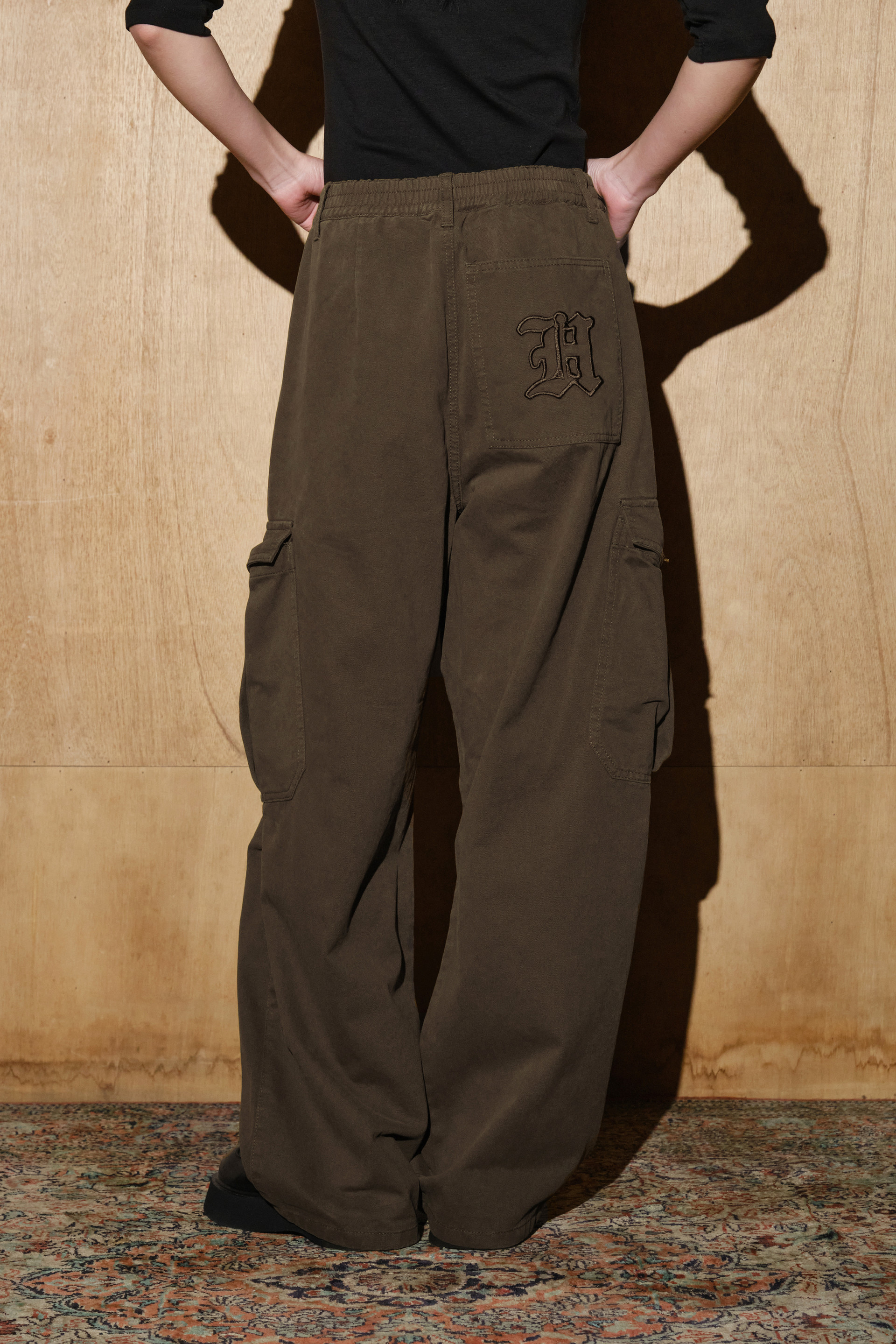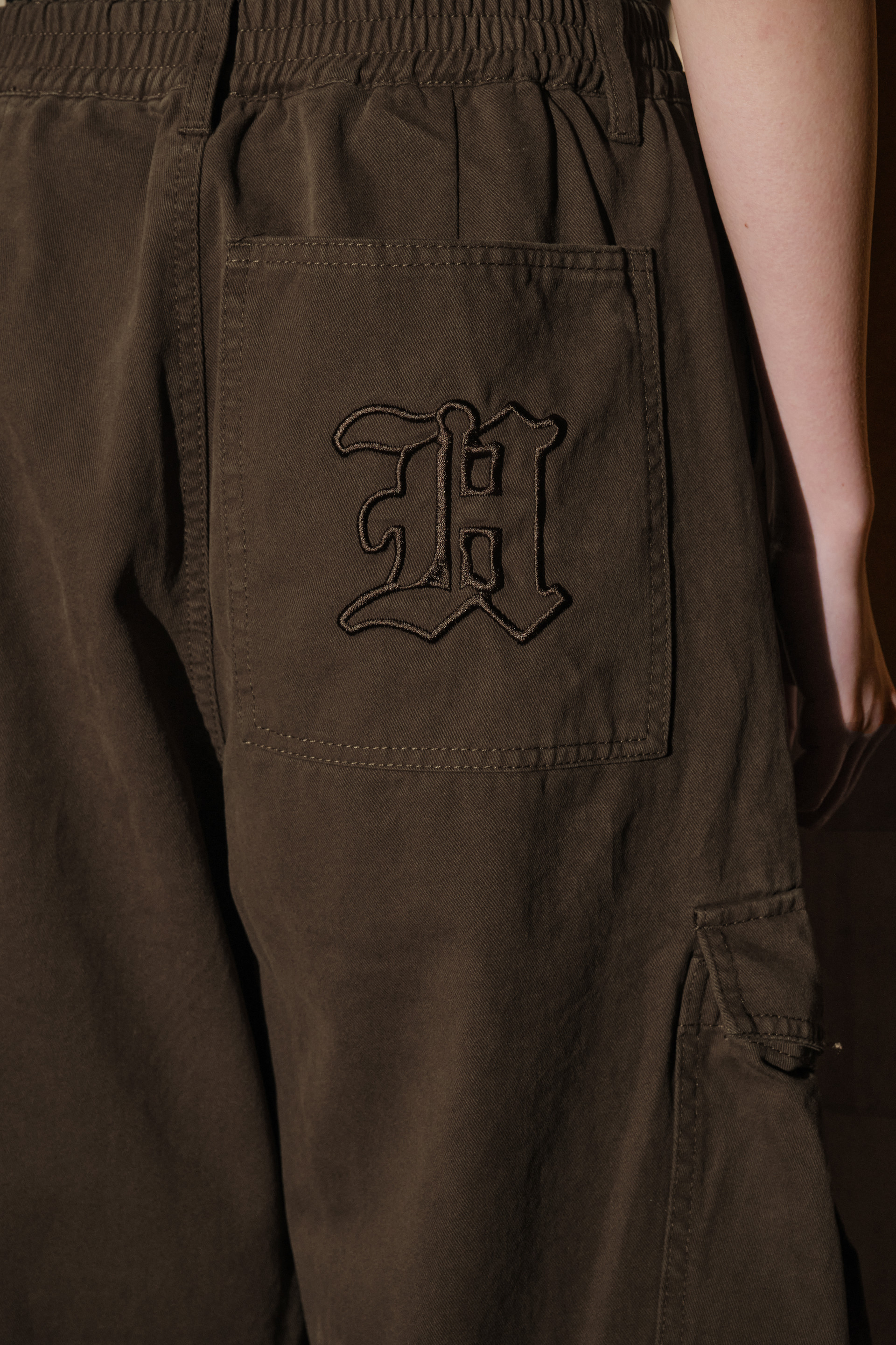 - 힙 포켓에는 락시크 무드를 연출하는 헬레네파리스 H 로고 니들 자수 디테일을 더했습니다.